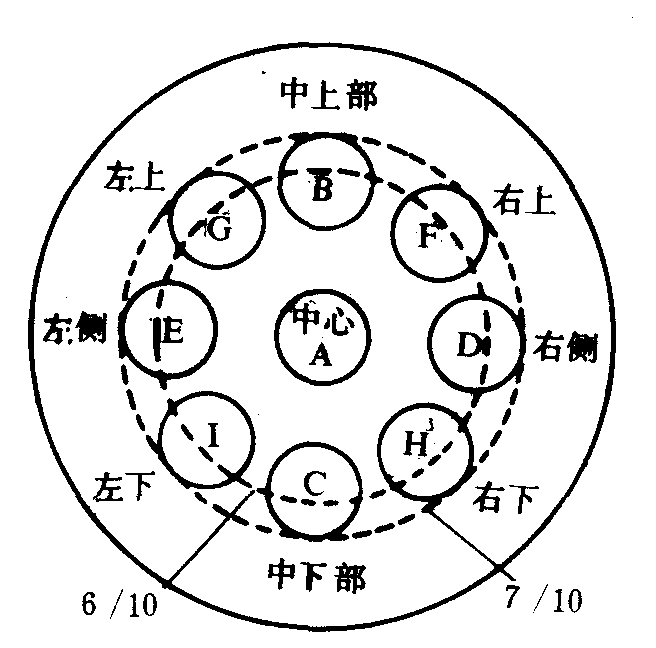 释义 | 本球撞点 本球撞点用台球杆撞击本球时所对的瞄准点叫撞点。本球的撞点一般有正中、中上、中下、右中、右上、右下、左中、左上、左下9个点。球的撞点以正中为中心,按球的直径6/10为半径画圆,对着这个圆圈之内撞击球,就可避免因打滑而造成撞击失误的现象发生。(图2—3—37)