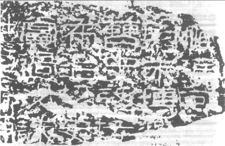 朱博殘碑 (局部) 傳西漢河平年間(前28—前24)刻。亦名<琅琊太守朱博殘碑>。隸書十行,行三至五字。斷碑,内容不清,但見“惟漢河……尉朱博……”等字樣。據其 “漢河”二字,推定為前漢河平年間碑石,與 <祀三公山碑>等同為由篆入隸之物,筆法遒古,引人注目。清光緒元年(1875) 自山東青州東武(今諸城縣)故城出土,尋歸諸城尹彭壽,故初拓本有尹氏印記,後有匡源跋,稱“琅琊太守朱博之頌德碑”。彭壽因名其居室曰 “博古堂”。亦有偽作之說,葉昌熾 《語石》曰: “ <朱博頌>確為諸城尹祝年 (彭壽)所造。”羅振玉 《石交録》 亦存此見。 |