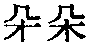 duǒ象形,小篆从木,上象枝叶、花果等低垂之形(一说上象禾叶下垂形),隶定为“朵”。本义为树木枝叶、花果下垂,引申为植物的花或花苞、量词(用于花)等。变体作“朶”。《异体字表》以“朶”为异体字。 【辨析】 以“朵”作音符构成的形声字一般读duo,但声调不同。duǒ:躲、哚、垛∣duò:剁、跺、垛。朵 *朵twa[甲骨] [金文] [小篆]《說文》: , 樹木朵朵也。从木。象形。此與采同意。(六篇上) 樹上結花朵狀。 ☚ 多 ">  ☛ 朵〈名〉指堆积而成的块状物;堆儿。 《聊·慈》二: 把一个小厮瘦成一~,不着来此,怕见了阎王。参看〖拸打(dɑ)〗。 |