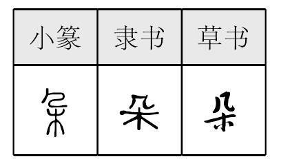 ❸ 大快朵颐 朵duǒ小篆为象形字,下为“木”,上似花朵开放。作声符生成的字有: duo 上声:躲(躲避) 垛(城垛) 哚(“吲哚”,一种有机化合物) 去声:剁(剁肉) 跺(跺脚) 垛(麦垛) 朵 篆duǒ[木(意符)+乃(聲符)→朵(《説文》:“朵,樹木垂朵朵也。從木,象形。此與采同意。”朵,植物的花或苞:花朵。朵兒;量詞,指花或成團的東西:三朵花。)] [明] 施耐庵《水滸傳》(第六十七回):“一個似北方一朵烏雲,一個如南方一團烈火,飛出陣前。” 朵朶duǒ(6画)