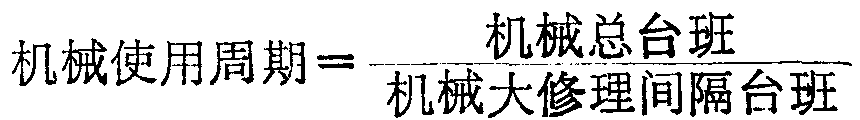 机械使用周期等于机械总台班除以大修理间隔台班。