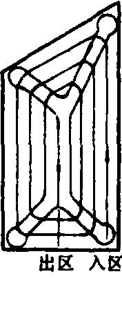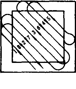 图3 斜行法 工作行程率除与田间行走方法有关外,还与机组结构和作业地块的垄长有关。减少空行程,提高工作行程率,对提高机组生产率、节约燃料有重要意义。 |