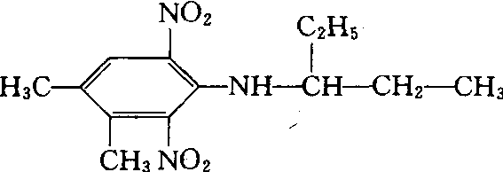 释义 | 杀草通pendimethalin又称除草通、二甲戊乐灵。二硝基苯胺类选择性除草剂。化学名称:N-1(乙基丙基)-2,6-二硝基-3,4-二甲基苯胺。化学结构式如下。原药为无臭橙黄色结晶,熔点 54~58℃。25℃时蒸气压为4×10-3 Pa。几乎不溶于水,可溶于氯代烃类及芳香化合物溶剂。在碱与酸性条件下稳定。通过抑制根与茎的分生组织而抑制杂草幼苗的生长,控制正在发芽的杂草。适于大豆、花生、玉米、棉花、烟草、蔬菜、马铃薯等旱地作物及果园使用,防除一年生单、双子叶杂草,对堇菜属、婆婆纳属及葎草等难以防除的杂草有效。大豆播前、播后苗前,玉米、花生、棉花等播后苗前使用。土壤干旱情况下,施药后需轻耙,以提高效果。对人、畜低毒,大鼠急性口服LD50为1 050~1 250 mg/kg,兔急性经皮LD50>5 000 mg/kg。对鱼类高毒。 |