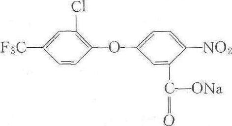 杂草焚acifluorfen sodium又称三氟羧草醚。二苯醚类触杀性除草剂。化学名称:5-〔2-氯-4-(三氟甲基)苯氧基〕-2-硝基苯甲酸钠。化学结构式如下。原药为浅褐色到黄褐色结晶粉末,密度1.546,熔点142~160℃,分解温度为235℃,30℃时蒸气压为133.322×10-6Pa。微溶于水,易溶于丙酮、乙醇等有机溶剂。能被杂草的茎叶吸收,促使气孔关闭,借助于光照,增高植物体温度,引起坏死。并可抑制线粒体电子传导,引起呼吸系统和能量产生系统的停滞,抑制细胞分裂使杂草致死。适用于大豆、花生田防除多种阔叶杂草,对1~3叶期禾本科杂草也有效。大豆、花生1~3叶期,杂草5~10 cm时使用。施药后大豆、花生叶片显出短期接触性药害,几天后可恢复。对人、畜低毒,大鼠急性口服LD50为1 540mg/kg,兔急性经皮LD50为3 680 mg/kg,大鼠急性吸入LC50>17.7 mg/L。对眼、皮肤有中度刺激作用。对鱼、鸟类低毒。