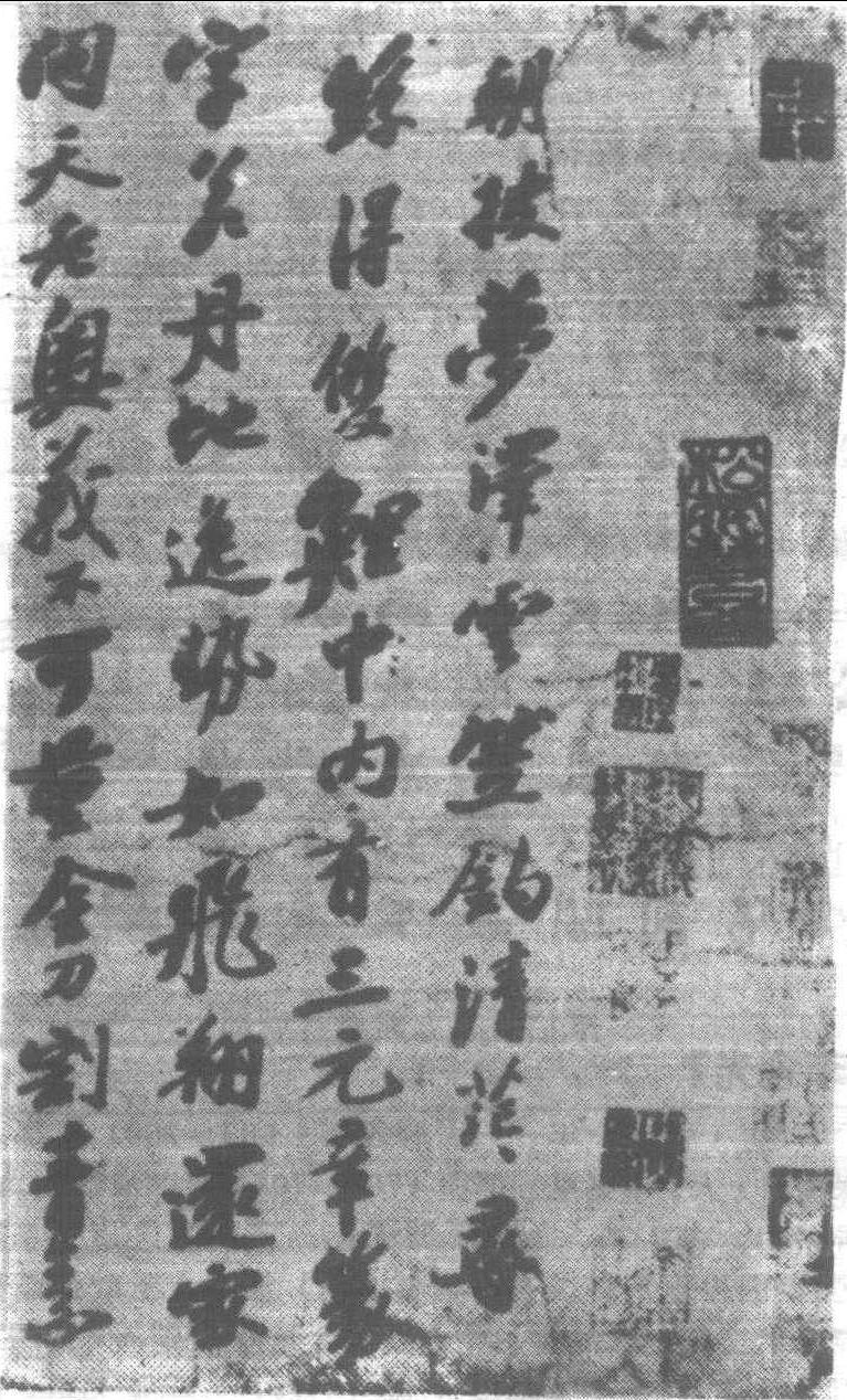李白憶舊游詩卷北宋黄庭堅書。草書。所書為唐李白<憶舊游寄譙郡元參軍詩>。卷長約三米九,卷首斷爛,欠八十字,存自 “迢迢訪仙城”云云五十二行。無款。元初,張鐸于反古中拾出,審定為山谷真迹,考係紹聖(1094—1098)間,山谷五十二、三歲貶謫黔時所作。明祝枝山云: “山谷書法,晚年大得藏真 (懷素)三昧,筆力恍惚,出神入鬼。紹聖後書近藏真。”山谷書法尤苦心脱俗,此書卷無紹聖以前之習氣,得晉人遺意,沉着痛快,人推為代表作。末有張鐸、沈周、祝允明三跋。經張鐸舊藏,一度入清内府,《石渠寳笈續編》著録,今歸日本京都藤井氏有鄰館。傳宋元祐(1086—1094)中,蘇軾、錢勰同觀山谷 (黄庭堅)揮翰作草于實梵僧舍,蘇軾賞嘆再四,錢勰從旁云:“君見 〈自序〉真迹,當更有得。”山谷一時心有未平。紹聖 (1094—1098)中,山谷謫黔時,始見石揚休之 〈自序帖〉,縱觀不已,頓覺超異,乃服錢勰之言。觀此,此卷蓋山谷晚年之筆。