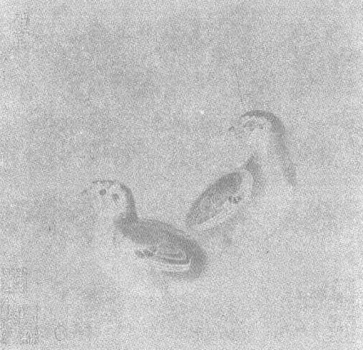 释义 | 李迪雏鸡待饲图页 李迪雏鸡待饲图页南宋。李迪(见《李迪风雨归牧图轴》条目)绘。绢本设色。纵23.7厘米,横24.6厘米。北京故宫博物院藏。图中以黑、白、黄三色,用细笔勾画了两只毛茸茸的雏鸡,一只昂首站立,一只屈肢俯卧。身形浑圆,羽毛柔软细密,仿佛两只可以活动的绒球。它们张嘴鸣叫,两双大而有神的眼睛朝同一方向望着,似乎腹中已饥,正在寻人前来喂饲。画面不作背景,小鸡描画得生动逼真,活泼娇嫩而又稚气十足,十分惹人喜爱。此图笔法细秀,色调明快,画面右上方款署“庆元丁巳岁李迪画”,可知此图作于南宋庆元三年,公元1197年,为作者的晚年之作。幅中钤有项元汴、张则之印,裱边上有乾隆内府的收藏印章。《石渠宝笈续编》著录。 ☚ 李迪枫鹰雉鸡图轴 宋人秋林放犊图轴 ☛ |