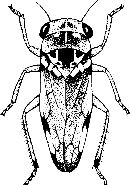 杧果扁喙叶蝉mango leafhopper为害杧果嫩梢、叶及幼果的刺吸式害虫。学名Idioscopus incertus (Baker)。同翅目,叶蝉科。分布于印度、爪哇、菲律宾、新加坡、斯里兰卡及中国广东、广西、福建、云南、台湾等省区,是杧果的主要害虫之一。群集于嫩梢、嫩叶、花穗、幼果及果柄上吸取汁液,在幼嫩组织上产卵造成伤口,使受害部位坏死,萎缩或落花落果。排泄“蜜露”,诱发烟霉病,影响植株生长。成虫体呈暗褐色,体长4~5.5毫米,绿色略带褐色。头短而宽、头顶黄色,颜面黄褐色,前胸背板散生黑色小刻点。小盾片前缘有3个黑斑、中间的1个较大,其后方近中央处还有两个明显的黑点,两黑点的外侧各有一新月形白斑,小盾片两侧缘后半部白色,构成一“V”形白带。前翅黄褐色,半透明,翅基有4个排列成一列的不规则白斑,前缘中区土黄色,其后方和翅端各有一长方形的黑斑(见图)。卵长椭圆形,微弯曲,白色至黄色。末龄若虫体长约4毫米,头、胸土黄色,有暗色斑,腹部黑色,背面前方有一大黄斑。年生多代。在海南一世代历时约80天,卵期3~4天,若虫期8~11天,成虫寿命66天,世代重叠。卵散产在花梗、嫩梢表皮下或嫩叶背面主脉中,产卵处呈一梭形伤痕,外有一束白色蜡质物遮盖,每雌可产卵70多粒。宜在嫩梢期,特别是花蕾和幼果期,喷洒马拉硫磷、乐果,敌敌畏或拟除虫菊酯类等进行防治。