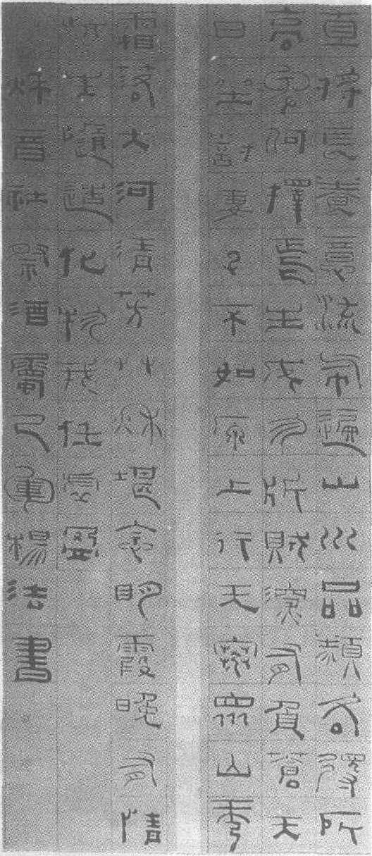 释义 | 杨法篆书五言诗轴 杨法篆书五言诗轴清。纸本。纵122.9厘米,横33.9厘米。江苏省扬州博物馆藏。杨法(清康熙三十五年—乾隆十五年后,即公元1696—1750年后),字已军,号白云帝子。江苏江宁(南京)人,寓居扬州。擅长花卉,风格清逸,极有韵致,类似新罗山人,与“扬州八怪”有异曲同工之妙,所以亦曾被列入“扬州八怪”的行列。精刻印,所书篆、隶、行、草书奇古苍劲,独创一格。乾隆十年,即公元1745年,作《隶书古诗十九首册》。其书名大于画名,所作绘画,流传极少。清震钧《国朝书人辑略》云:“工篆籀,黄园中‘柳下风来相间月上’八字,是所书也。”近人马宗霍《霋岳楼笔谈》云:“狂草恣逸,殆不可识,殊无笔法。”此书五言诗将秦篆汉隶融为一体,结字匀称端庄典雅,行气流畅,有凝重浑劲之气,用笔轻重疾徐有致,线条粗细任意自然,有浓厚的画意,是杨法书法作品中不可多得的精品。 ☚ 姚鼐行书游江东诗册 钱沣行书诗话一则 ☛ |