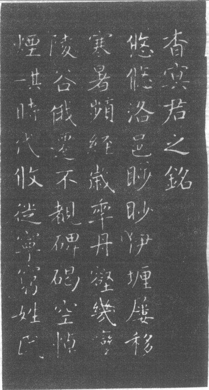 释义 | 杳冥君銘武周·神功元年 (697) 刻。傳為薛稷撰并書。原石早佚,且無整本流傳,故行款不詳。今據《戲鴻堂帖》、《玉烟堂帖》、《秀餐軒帖》所刻,得窺薛稷風貌而已。此種刻本僅復刻銘文,或以為原來無序,只有銘文。因傳為薛稷書,故有名,但其翻刻,筆力全失。 杳冥君銘 (局部) |