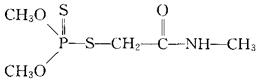 广谱内吸有机磷杀虫剂。 化学名称:O,O-二甲基-S(N-甲基氨基甲酰甲基)二硫代磷酸酯。化学结构式如下。 纯品为白色针状结晶,有樟脑气味,熔点51~ 52C,密度1.281,25℃时蒸气压1133.2×10-6Pa。 21℃时水中溶解2.5%,可溶于乙醚,易溶于甲醇和苯。 在中性和弱酸条件下稳定,水溶液室温下逐渐分解,在碱性条件下迅速水解,对日光稳定,湿气会引起分解。有较强的触杀活性,兼有内吸性,无熏蒸作用。可用于水稻、棉花、麦类、油菜、玉米、蔬菜、烟、茶、花卉及果树上的飞虱、叶蝉、蚜、螨、蝇、蚧等害虫。对大鼠急性口服LD50为152mg/kg,急性经皮LD50为353mg/kg,对鱼类毒性小,对蜜蜂毒性大。 FAO与WHO1988年规定,ADI值为0.1mg/kg。中国规定,乐果安全间隔期:柑橘、萝卜>15天,小麦、高粱、白菜>10天,青菜、苹果、茶叶>7天,烟草、豆菜>5天,黄瓜>2天。