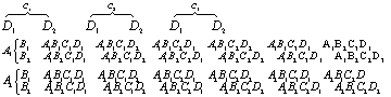 H1: 两种浓度(B1与B2)所得计数不同。基础液间: H0: 三种基础液(C1、C2、C3)所得计数相同, H1: 三种基础液(C1、C2、C3)所得计数不同或不全相同。是否加维生素: H0: 加与不加维生素(D1与D2)所得计数相同,H1: 加与不加维生素(D1与D2)所得计数不同。 一级交互作用 H0: A×B、A×C、A×D、B×C、B×D、C×D无交互作用, H1: A×B、A×C、A×D、B×C、B×D、C×D有交互作用。 二级交互作用: H0: A×B×C、A×B×D、A×C×D、B×C×D无交互作用, H1: A×B×C、A×B×D、A×C×D、B×C×D有交互作用。 三级交互作用: H0: A×B×C×D无交互作用,H1: A×B×C×D有交互作用。 均取α=0.05水准。 总变异的离均差平方和包括4个因素变异、6个一级交互作用变异、4个二级交互作用变异、1个三级交互作用变异和1个误差(剩余变异),分别计算如下。并将结果列于表9,以便分析。 (1)总变异的离均差平方和。计算表5每个组合的合计,列于表6, 表6 表5数据的交互作用的总副表