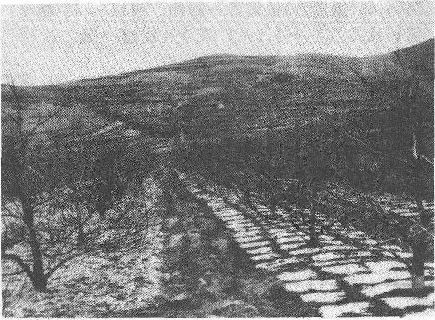 果园土壤管理orchard soil management果园耕作及培肥的技术措施。果树长期生长发育过程中, 受自然因素和人、畜的干扰或破坏, 使园地土壤的理化性状恶化, 肥力下降。为防止土壤恶化, 进而改良、培肥土壤,给果树根系创造良好的生活环境, 是果园土壤管理的基本任务。 管理原则 幼龄果园, 树株较小, 园内有较多的空地, 树盘和行间土壤应分别管理。果树树冠垂直投影的土壤面积, 称为树盘,是果树水平根的分布范围,幼树时期一般超出树盘(见根), 树盘及其周围的土壤管理, 直接与果树生长结实有密切关系, 通常采用清耕、覆盖和喷洒除草剂免耕(见果园除草剂)。果园行间土壤管理, 主要是间作作物(见果园间作)和种植绿肥(见果园绿肥)。此外, 也可以实行行间生草法。成龄果园, 果树已充分长大, 根系已满布园地。此时土壤管理应全园统一考虑。中国果园多数以清耕法为主,欧美果园则多用生草法。此外, 还有覆盖法。 果园土壤管理, 通常采用以下三种方法: 清耕法 每年对全园土壤进行多次耕耘, 保持常年土松无草。工具多用犁、中耕机或锄、锨等。在干旱和半湿润地区, 果实采收前后,或雨季到来之前,进行中耕, 深度10~15厘米, 近树干处稍浅; 春、秋季则需浅耕, 深10厘米左右; 生长期间, 根据杂草孳生和降水情况进行多次耕耘。达到灭草、保墒、防涝, 和改善土壤微生物活动的目的, 加速土壤有机物质的转化,和可给养分的释放, 以及防止返碱; 在降水量大,土质粘重的南方常绿果树果园, 则应在做好水土保持和排除积涝的基础上, 雨季深中耕通气, 伏旱时则浅锄保墒。清耕法易促使土壤有机质的过度消耗, 不能长期维持地力和较大幅度增产, 在风沙地区和水上流失地区, 还易使土壤受到侵蚀。 生草法 是欧美广为采用的方法, 日本苹果园也较多应用。生草法分永久生草和短期生草两类, 前者在果园定植的同时, 在行间播种多年生牧草, 定期刈割, 不加耕翻; 后者选择1~2年生草, 逐年或越年播于行间,待花前或秋后收割。中国北方果园降水少,灌溉条件差, 故常以1~2年生绿肥间作生草, 20世纪70年代, 开始少量试用永久生草法。 果园生草法使用的草类有禾本科的鸭茅草、紫羊茅草、鹅观草、黑麦草、野燕麦等; 豆科的三叶草、小冠花、苕子等。用豆科和禾本科草混种, 对改良土壤有良好作用。美国生产红色苹果的果园, 常以禾本科草为主, 以免在果实着色期, 不易控制由豆科牧草所提供的氮素营养而影响着色。果园种植禾本科草, 需适时补追氮肥, 在生长季节, 还要大量浇水, 免除草与果树争夺肥、水。为了避免草与果树的竞争, 株间实行喷洒除草剂或清耕; 在果树花期前后, 草高达30厘米时, 应及时刈割, 割后留茬约10厘米, 每年约刈割4~6次。割下的草,散撒于果园,或覆盖于树盘; 或用作饲草, 造肥还园。生草若干年后, 应进行条状间隔深翻, 使牧草更新复壮, 杂草占有一定比例时, 应翻耕重种。 果园生草后,能增加土壤有机质和有效养分含量,提高土壤团粒结构, 减少果树营养亏缺症; 促进果实成熟和枝条充实, 增进果实品质; 减少土、肥、水的流失和土壤温度的季节变化等对果树的不良影响。行间耕锄少, 节省劳力, 成本低,雨后便于机械化作业。生草制需有充分的灌溉条件。 覆盖法 中国南方柑橘园用覆盖法有悠久历史,广东化州红壤柑橘园, 从橘树定植开始, 用铁芒萁(Dicranopteris linearis)进行覆盖, 厚约6~9厘米,以后每年添草, 保持原有厚度; 日本稻区果园, 常用稻草覆盖, 每公顷果园覆盖稻草40吨, 以后每年补充10吨。欧美各国也有用覆盖法。中国在80年代起, 在旱地果园大量推广覆草制作为节水栽培的一项重要措施(见图)。