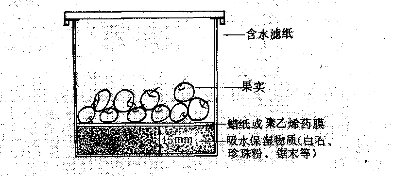 果实防腐剂生物测定bioassay of fruit pre-servatives杀菌剂生物测定之一。将果实用药剂处理后,接种病原菌,经定温保湿培育一定时间后检查发病情况明确药效。 测定方法为,用砂纸轻微地擦伤果实表面或用针刺伤果皮,再将果实在一定浓度的药液中浸渍一定时间或喷上药液,晾干后,用脱脂棉球蘸取病菌孢子液,在果实上轻轻摩擦进行接种。然后将果实放入玻璃保湿器中(见图),在一定温度条件下经过数日,观察发