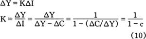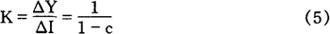 释义 | 乘数理论 【内容介绍】: 1.乘数理论的基本内涵 乘数是指公共支出或私人资本投资的增加对收入的扩张性影响或连锁反应。 假定,某一社会在某时期投资增加10元用于建造一个新的工厂,它增加了直接从事工厂建设的工人的收入,增加了与工人做交易的商人的收入,增加了商人的供货者的收入,……以此类推。当然,这10元钱不是无限地倍增,因为人们通常不会把新获得的收入都花掉,而是花掉一部分,储蓄一部分。 在一定时期内,这10元的新投资所引起的全部收入的增加额将是投资的一个倍数,这个倍数就叫乘数。 假定每一时期获得新收入的消费者平均来看将增加的收入的c部分用于消费,亦即假定消费者的边际消费倾向(marginal propensity to consume)为c,则这笔新投资在n期中所引起的收入连锁增加之和△Y为: △Y=10+10c+102+…+10n-1 (1) 或 一般而言,0<c<1,故当n→∞时,cn→0。因此, 倘若以△I代表任何数量的新增投资,则(3)式可改写为: 或 (5)式表明,乘数等于1减去边际消费倾向的倒数。如上所述,人们对新增的收入,不用于消费,就用于储蓄,故边际消费倾向(c)与边际储蓄倾向(s)之和等于1。 因此,我们也可以用边际储蓄倾向来表述乘数: 需要指出的是,只有当n→∞时,乘数的作用才能完全实现。可是,我们可能最关心新投资在某一时段内(比如说1年或3年)所产生的效果。 倘若这一时期包括x期,在x期内的实际乘数是: x期内的实际乘数占完全乘数(full multiplier)的比例是: 从(7)式可知,cx越小,实际乘数K′越接近于完全乘数或理论乘数K:c值越小,x值越大,cx值越小,则K′→K。 也就是说,边际消费倾向越小,观察的时期越长,实际乘数就越接近于完全乘数。 2.凯恩斯对乘数的利用 一般认为,乘数理论最先由卡恩(Kahn,1931)在1931年提出的。不过,卡恩当初所说的乘数是就业乘数(employment multiplier),即新投资使就业增加的总量与新投资所直接引起的初次就业之比,与上一节来源于凯恩斯论述的投资乘数(investment multiplier)不一定相同。 凯恩斯在其《通论》中采纳了卡恩的乘数概念,研究投资变动对总收入的倍增作用。根据凯恩斯的理论, Y=C+I (8) 其中,Y代表收入,C代表消费,I代表投资。 △Y=△C+△I (9) 即增加的收入等于增加的消费支出和增加的投资支出之和。假定K代表乘数,表示投资增加使收入增加的倍数,则 这与上述的(5)式相同。 不过,这里所说的凯恩斯的乘数与边际消费倾向在概念上实际是同物异名,二者间的关系是定义上的关系而不是因果关系。根据定义, K=1/(1-c) 而 c=1-(1/K) 所以,哈伯勒(Haberler,1944,p.195)认为这是“同一事物的两种称谓”。 可是,凯恩斯却利用这种定义上的关系处理新投资与新增收入之间的因果关系,故而引起很大争论。 3.乘数分析的扩展 乘数分析不只可以用来分析新投资的扩张作用,还可以分析其他支出的作用。 假定 G表示政府支出,a表示消费函数的常数项,表明收入为零时仍有a水平的消费,I和G都为独立变量。 (11)式中,1/(1-c)是乘数。 从(11)式可以看出,不论是投资增加,政府支出增加,还是消费函数的常数项增加(即整个消费曲线上移),都产生乘数效应。如果把税收、外贸等因素考虑在内,乘数会有所不同。 所以,根据这一概念,人们后来提出了许多专门的乘数,如外贸乘数(研究不断变化的进口量的作用)、连续周期乘数(研究乘数作用的时间选择问题)、财政乘数(研究财政支出与税收变化对经济波动的平抑作用)等等。 当然,我们还可以进一步把投资划分为两部分,一部分为自主性(或自发性)投资(autonomous investment),用IA来表示,是独立变量;另一部分是引致性投资(induced investment),用II来表示,与收入保持一定比例b,b就是通称的边际投资倾向(marginal propensity to invest)。 所以, 通常,人们把(12)式中的1/(1-b-c)称为“复合乘数”(compound multiplier),而把前面的1/(1-c)称为简单乘数(simple multiplier)。可是,需要注意的是,在现实中,自主性投资与引致性投资很难区分开来,因此,复合乘数概念在经济学中未得到广泛应用。 4.乘数分析的局限性 根据上述分析,我们知道,投资或其他支出增加,通过乘数作用,会使收入按一定倍数增加。但是,收入的增加并非无限度,会受到许多因素的影响,这需要我们在利用乘数分析时格外注意。 经济体系的约束 一般来说,任何社会的生产都要受到充分就业或因某种生产要素短缺所形成的瓶颈的限制。倘若生产已达到这些限制因素所规定的水平,乘数的作用只会增加货币收入,而不会增加或不会同等程度的增加实际收入。 也就是说,在充分就业的情况下,乘数的作用只会引起物价上涨,不会增加实际收入;在经济尚未实现充分就业的情况下,随著经济的扩张,充分就业日趋接近,支出增加所代表的有效需求的提高,一部分被物价的上涨所抵消,使得实际收入的增加滞后于货币收入的增加。 相关变量的约束 乘数发挥作用的前提是初始支出增加必须是净增加,否则相关变量之间会产生抵消效应。就以政府的公共工程支出(或其他支出)增加为例,可能至少会有两种抵消力量。 第一,如果政府增加税收,公共工程从业人员增加的支出或多或少要被纳税人减少的支出所抵消,抵消的程度取决于以牺牲消费而不是储蓄为代价支付增加的税收的程度。 这种观点后来发展成为平衡预算乘数理论。 第二,如果政府不增税而举债,这将对私人投资产生不利影响。 因为,随著经济扩张,消费者和