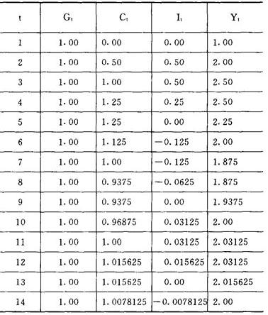 释义 | 乘数-加速数模型 用乘数与加速原理的相互作用来解释经济周期性波动的一种理论。 由美国经济学家A.汉森与P.萨缪尔森提出,故又称为“汉森-萨缪尔森模型”。这一模型说明,投资或其他需求项目(如政府支出)的变动会通过乘数作用影响国民收入,而国民收入的变动又会通过加速原理来影响投资。正是这种乘数与加速数的相互作用使经济中形成了周期性波动。萨缪尔森用下列模型来表述这一理论。 设Yt、Ct、It、Gt分别为现期收入、现期消费、现期投资与现期政府支出。根据凯恩斯主义国民收入决定理论,现期收入等于现期消费、现期投资和现期政府支出之和: Yt=Ct+It+Gt (1) 消费取决于边际消费倾向(α)和前期收入(Yt-1): Ct=α·Yt-1 (2) 投资取决于加速系数(β)和消费的变动(CtCt-1): It=β(Ct-Ct-1)=αβ(Yt-1-Yt-2) (3) 把(2)与(3)式代入(1)式,得出: Yt=α·Yt-1+αβ(Yt-1-Yt-2)+Gt 再设α=0.5,β=1,则可作出上表。 由上表可以看出,由于乘数和加速数的相互作用,即投资、消费与国民收入的相互影响,从而使经济形成了周期性波动。所以,如果让经济本身的力量自发调节,经济中周期性的波动就是正常的。 要减缓或消除这种波动,必须由政府干预经济。参见“加速原理”、“乘数原理”。 |