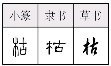 kū形声,从木,古声,本义为植物失去水分或生机,引申为井水或河水等干涸、干燥、人的身体干瘦、单调而没有趣味等。 【辨析】 枯/渴/竭 “渴”和“竭”指水干了;“枯”指草木缺水。这三个字意义和读音相近,是同源字。 |