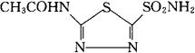 C4H6N4O3S2=222.24 CAS-59-66-5 N-(5-氨基磺酰-1,3,4-噻二唑-2-基)乙酰胺。 N-(5-Sulfamoyl-1,3,4-thiadizol-2-yl)acetamide. 碳酸酐酶抑制药。可降低眼内压,用于青光眼。 代冒克斯,醋唑磺胺,乙酰偶氮胺(台),醋氮酰胺。 Acetazolamide,Diamox,Albox,Diluran,Diutazgol. 乙酰唑胺片,乙酰唑胺注射液,乙酰偶氮胺锭(台)。 INN,BAN,BP,DCF,FP,IP,JP,NFN,PH,USAN,USP,MI.  |
