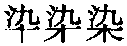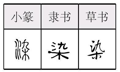 ❹ 出尘不染|耳目濡染|耳濡目染|耳习目染|目濡耳染|日渐月染|纤尘不染|一尘不染 染 金文; 篆rǎn[氵(水,意符)+杂(各種顔料,意符)→染(《説文》:“染,以繒染爲色。從水,杂聲。”染,古人染色時多將染料放入缸中加水和匀,然後放入布料,用木棍不斷攪動,或加溫度,使之上色。迄今少數民族地區染藍土布時,仍用這種古老的工藝。不該染的地方被染上了色,如染工的手〈沾染、污染〉。引申爲〈感染、傳染、薰染〉。清正廉明的官員被譽爲〈一塵不染〉。形容山上的楓樹林盡成紅色〈層林盡染〉。)] [唐] 王建《江陵使至汝州》:“日暮數峰青似染,商人説是汝州山。”(注:商人,指經商的人,途中的旅伴。) [宋] 黄庭堅《念奴嬌》:“斷虹霽雨,淨秋空、山染修眉新緑。”(注:斷虹,彩虹消失;霽雨,雨後初晴;修眉,女子細長的眉毛。) 染rǎn(9画)