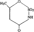 释义 | 乙酰舒泛 C4H5NO4S=163.15 CAS-33665-90-6 6-甲基-1,2,3-鲊噻嗪-4(3H)-酮,2,2-二氧化物。 6-Methyl-1,2,3-oxathiazin-4(3H)-one 2,2-dioxide. 甜味药。 Acesulfame. INN,BAN,USAN. |