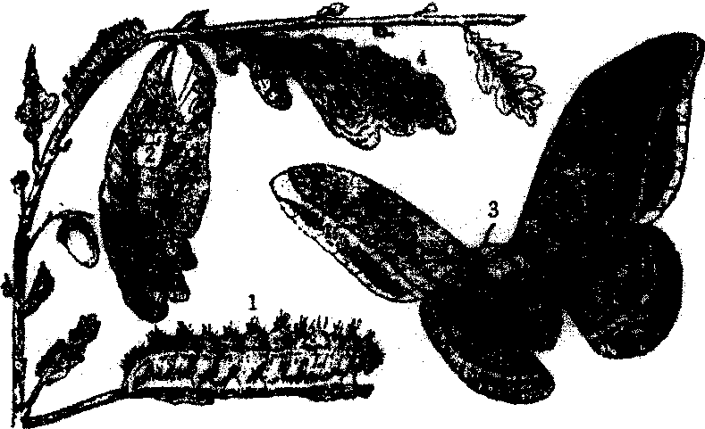 ☚ 家蚕 尺蠖 ☛ 柞蚕资源昆虫。鳞翅目,大蚕蛾科。成虫被黄褐色鳞毛,翅近三角形,中央具眼状斑纹。幼虫黑色或黄色。以栎类树叶为食料。中国是饲养最早、蚕丝产量最高的国家。蚕丝可供出口;蚕蛹可食,亦可提取蛹油、干酪素;蛹渣可作饲料。参见“农业”中的“柞蚕”。 柞蚕鳞翅目天蚕蛾科的经济昆虫。以蛹越冬,放养于野外,幼虫有黄、绿、天蓝等色,以山毛榉科的麻栎(又称“柞木”)树叶为食。经四次蜕皮成熟吐丝结茧,茧黄褐,形长椭圆,一端有茧柄。中国东北和山东胶州地区每年放养两次,贵州、四川、河南一带每年放养一次。中国、印度已有商品柞蚕丝生产,丝质仅次于高级家蚕丝。 柞蚕 柞蚕Antheraea pernyi无脊椎动物,昆虫纲,鳞翅目,天蚕蛾科。为我国特产的一种经济价值较大的野蚕。成虫体长约4厘米,翅展16厘米左右。头小,呈球形,触角羽状,褐色,雌蛾窄而长。复眼半球形,口器退化。全体被有黄褐色鳞毛,前翅大,后翅小,4翅中央各有1个白色眼斑及斜条纹,能飞,触角羽状褐色,雌蛾狭长,雄蛾宽厚。幼虫绿色、黄色或天蓝色等,头部前方中央有“人”字形头缝。口器发达,能切截树叶。下唇中央前方有1个吐丝器,呈管状,顶端有吐丝孔。体上有毛瘤,刚毛挺直。食量较大,多以辽东柞、蒙古柞、麻栎、槲、胡桃、山楂等树叶为主要食料,可在室外人工放养。经四眠五龄发育成熟,一般可在柞树叶中吐丝作茧。作茧时,先吐丝拉住2~3片柞叶,吐丝织成瓮状,絮成茧衣后爬出,用丝绕在柞枝上,织成茧柄,然后回到“瓮”中,再织成茧层。茧层坚硬,约4天可在茧中化蛹。茧椭圆形,黄褐色,可作缫丝原料。蛹浓黑色,纺锤形,头钝尾尖,长约3.5厘米,雌大雄小,以蛹越冬。约在3000年前,我国已开始人工放饲,于19世纪传到欧洲,现在世界各国所饲养的柞蚕均是直接或间接由我国引进的。辽宁、山东、河南等地为我国柞蚕茧主要产区。柞蚕丝有良好的物理性,可用作织丝绸,工业上可用作制轮胎内芯或制成降落伞。 柞蚕 1.幼虫;2.成虫(蛾) ☚ 桑蚕 蓖麻蚕 ☛ 柞蚕 柞蚕亦称野蚕、山蚕,由人工放养于柞林之中。野生柞蚕的人工饲养,在世界上以山东省的胶东为最早。西晋崔豹《古今注》说:“(汉)元帝永光四年,东莱郡东牟山(今牟平县城东北),有野蚕为茧……,收得万余石,民以为棉絮。”这说明柞蚕为山东人民所利用至少有两千多年的历史。东汉初年,政府开始提倡人工放养柞蚕,到明代,烟台地区已较普遍 如《牟平县志》载:“放养柞蚕者,成为农家普通副业……”蚕农已有一套成熟的放养方法。清初益都(今青州)孙廷铨著《山蚕说》,对此作了详细记载。19世纪中叶以后,我国柞蚕丝绸畅销国外。1920年前后,仅胶东一带每年就向日本、东南亚、欧美出口柞丝绸约70万公斤。柞蚕丝吸湿性强,导热率低、加工成织物,冬暖夏凉,自古以来为人们所喜爱 工业上还用来作绝缘材料及轮胎内芯、降落伞等原料。 ☚ 相土 胡宗沔 ☛ 柞蚕tussah;oak silkworm |