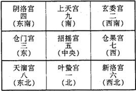 九宫各有专名和数字(如表)。金、元时针灸家将八脉交会穴配合九宫数成为灵龟八法。