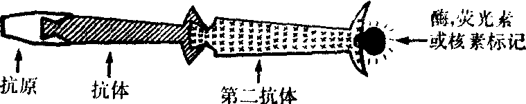 释义 | 标记第二抗体 标记第二抗体第二抗体是一种抗抗体,指用人或动物的抗体Ig作为免疫原,免疫动物产生的抗体Ig,它能与免疫原发生特异性结合。第二抗体可以通过化学方法标记上荧光素、酶或放射性核素,而广泛应用于检验与科学研究,是近代免疫学、血清学上非常重要而锐敏的诊断用品。 标记第二抗体示意图 荧光标记第二抗体与荧光免疫法 在一定条件下,某些荧光素能与抗体Ig分子结合而不影响抗体的特异性结合抗原的功能。用这种荧光抗体染标本,能在荧光显微镜下对相应抗原进行鉴定与定位,最常用的荧光素有黄绿色的异硫氰酸荧光素和红色的罗丹明等。先将高效价的第二抗体,即抗Ig诊断血清用硫酸铵盐析法提取球蛋白,在碱性缓冲液和不断的轻微搅拌下加入荧光素使之化学结合,然后用葡聚糖G-25凝胶过滤除去游离的荧光素,加1/10,000硫柳汞等防腐即可供用,F/P比值一般在1~2之间,蛋白含量略高于10mg/ml,工作稀释度在1∶16或更高。冰箱保存效期一年。 荧光抗体染色基本分三类: ❶直接法: 本法用的不是标记第二抗体,而是标记抗体直接与检品中的抗原相结合。方法虽较简便,特异性也较好,但敏感性差,其主要缺陷为每检查一种抗原就必需有相应的标记抗体,此种标记抗体一般均无现成的商品。 ❷间接法: 先使未标记的特异性抗体与相应抗原结合,再加与抗体相对应的荧光标记第二抗体。阳性时,出现结合(见图),敏感度较直接法高5~10倍,并且有商品标记第二抗体(抗兔IgG,抗鼠IgG等),以及多种致病微生物的特异性诊断血清,使用非常方便。 ❸补体法: 用标记的抗豚鼠补体C3检查试验前段所形成的抗原-抗体-补体复合物。由于每次需用新鲜补体等缺点,用者不多。荧光免疫法在医学上主要用于快速诊断各种致病微生物和检测组织细胞中的特异性抗原,由于能从细胞水平观察与鉴定,应用相当广泛。 酶标第二抗体与酶免疫法 标记所用的酶有数种,最常用的是辣根过氧化酶和碱性磷酸酶,前者多用联大茴香胺或磷苯二胺等作为底物,后者常用对硝基苯磷酸盐。酶标记第二抗体的方法有戊二醛交联法和过碘酸钠法两类。过碘酸钠法标记率高,产物分子量400,000,是常用的良法,标记为以过碘酸盐氧化与活性无关的酶分子上的糖基成为醛基,使酶易与Ig的氨基结合而成标记抗体。酶标记用的第二抗体需要用纯Ig,生产时多用硫酸铵盐析——DEAE纤维素柱层析法或QAE纤维素柱层析法提取。目前大量供应的酶标第二抗体主要有辣根过氧化酶标记的羊(马、兔)抗人IgG、抗人IgM,羊(马)抗兔IgG,兔(羊)抗鼠IgG等。使用方法中最常用的是酶联免疫吸附试验法(ELISA)及组织化学法。 (1)酶联免疫吸附试验: ELISA的原理是抗原或抗体(蛋白)能被一些固相载体(如塑料管、反应板或是珠子)吸附而包被于其表面,再遇相应抗体或抗原时发生结合,洗去未结合物,再加酶标第二抗体及底物,即出现显色反应。ELISA既特异又高度敏感,用于测定IgE及乙型肝炎表面抗原(HBsAg)等,敏感度可达0.5ng/ml左右,与号称最锐敏的放射免疫分析法几乎相同。而且酶免疫技术无需放射性核素操作时所必备的防护措施,制剂又非常稳定,效价达一年以上,这是核素标记抗体效期的数十倍。 ELISA方法: ❶间接法: 将已知抗原包被于板孔中,加检品血清,有抗体则形成复合物,再加酶标第二抗体及底物即可定量检查检品中的抗体效价。 ❷双抗体夹心法:用已知抗体包被反应板孔,加检品如有相应抗原存在即可结合,再加酶标特异抗体和底物即可测定抗原含量,此法所需标记抗体不是第二抗体,所以随抗原而种类繁多,不胜供应。中国医学科学院基础医学研究所免疫室建立了双抗体夹心改良法、共4层: 已知抗体——待检抗原——已知抗体——酶标第二抗体,从而解决了上述问题,又提高了敏感度。 ❸竞争性抑制法: 先用抗体Ig包被固相吸附后分两份,一份加酶标记抗原和待检抗原,另一份仅加酶标记抗原,孵育后洗涤加底物,待检抗原含量越高,酶标抗原被结合越少,有色产物也就越少,据此可以计算待检抗原的含量。本法主要用于小分子抗原的测定,不使用酶标记第二抗体,而多用酶标记抗原。 (2) 免疫酶组化法: 在组织病理学和病毒学中应用很广。方法多用间接法,即使用组织切片或细胞涂片,检查其中有无某种病毒或抗原时,先用相应的诊断血清处理,洗去游离的抗体后加标记第二抗体,最后加底物,显色,用光学显微镜或电镜观查棕褐色抗原抗体复合物所在的部位,可以做出定位,并可进行形态学研究。 核素标记第二抗体与放射免疫法 由于蛋白质易于结合放射性的卤族原子,本法所用放射性核素主要是131I和125I,它们的半衰期分别为8天和60天,虽然射线主要都是β粒子,但131I是次高能,125I是低能粒子,射线能量相差很多。标记用的第二抗体需用高纯度的IgG,以DEAE纤维素或QAE纤维素制备,标记工作应在放射性核素工作室进行,遵守放射线使用规定,注意安全,在电磁搅拌下加一定量的磷酸盐缓冲盐水(PBS)、Na125I溶液和抗体Ig,然后迅速加入氯胺T促成结合,再加偏重亚硫酸钠中止反应,以葡聚糖G-25柱去除游离的125I,此法标记率很高,抗体活性亦好。 放射免疫法包括放射免疫自显影、放射免疫分析和固相放射免疫分析三类: ❶放射免疫自显影:免疫单扩散板上的抗原抗体复合物结合标记第二抗体后,可用X光底片或银胶乳曝光,然后用显影液及定影液