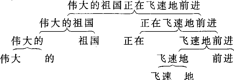 用树形图表示句子结构的方法。整个句子好比一棵树,树上生出层层树权,每层树杈表示句子的一个结构层次,树杈上的语言单位表示分出来的结构成分。如“伟大的祖国正在飞速地前进。”