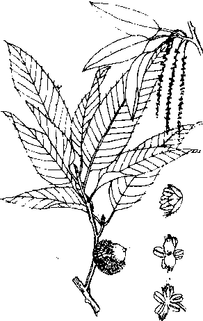 释义 | 栓皮栎见柞树种类。 栓皮栎oriental oakQuercus variabilis Blume,又称软木栎、粗皮栎、白麻栎。壳斗科,栎属。落叶乔木。高达30 m,胸径1m。树皮栓皮层发达。叶矩圆状椭圆形或椭圆状披针形,长8~15 cm,具芒状锯齿,下面密被灰白色星状绒毛。花单性;雄花序下垂。壳斗杯形,包果约2/3,小苞片钻形,反曲。坚果宽卵形或近球形,高约1.5 cm,顶部平圆。分布于辽宁、河北、山西、陕西、甘肃、东南部及以南广大地区,生于海拔3 000 m以下的阳坡。喜光,主根发达,对土壤要求不严。种子繁殖或萌芽更新。栓皮为不良导体,为重要工业原料(见“栓皮”)。壳斗可提取栲胶或制活性炭。木材坚硬,纹理直,花纹美观,强度大,干燥易裂;为车轮、船舶、枕木,家具、地板、体育器材等优良用材。 栓皮栎 栓皮栎 栓皮栎shuanpiliQuerens rariabilis壳斗科。落叶乔木。树皮厚而软,纵裂,木栓层发达,厚可达10厘米。叶长椭圆状披针形,边缘具芒状锯齿,下面密被灰白色毛。雌雄同株,雄花成柔荑花序,下垂。雌花单生。壳斗杯形,包围坚果2/3以上,苞片钻形,反曲。坚果近球形,直径1.3~1.5厘米。分布辽宁南部,华北、陕西、甘肃、四川、贵州、云南、两广和台湾,为重要的造林树种。喜光,深根性,耐旱和瘠薄土壤。小干可养木耳;树皮木栓发达,可制软木砖、瓶塞、救生圈等;木材纹理直,结构略粗,质较坚,有弹性,供建筑、枕木、车船等用;种子可酿酒或作饲料;壳斗含鞣质;种子可提淀粉。 ☚ 榛 麻栎 ☛ 栓皮栎 栓皮栎地方特种经济林木。又名软木栎、牛皮栎、厚皮栓,为壳斗科麻栎属落叶乔叶。湖南是全国栓皮栎主要产区之一,集中分布于常德、石门、慈利、张家界、永顺、黔阳、通道、靖县、新宁等地。栓皮栎用途广泛,使用价值高,木材为良好的建筑、家具用材,栓皮具有绝热、隔音、耐压、质地轻软而富有弹性、不透气、不透水、耐腐蚀等特性,是软木工业的主要原料,树内皮富含单宁,可提炼烤胶,种子即 “橡子”,含淀粉50.4%~60.5%,还原糖4.45%,蔗糖2.96%,粗蛋白3.72%,可做豆腐、豆豉、豆皮等食品,还可造酒精、作饲料。树叶可喂养山蚕,也是沤制农家肥的原料。 ☚ 珙桐 桂东方竹 ☛ 栓皮栎 栓皮栎壳斗科栎属落叶乔木, 树皮栓皮层发达。产文县、康县、武都、成县及小陇山林区。抗旱、抗火、抗风,适应性广。栓皮质轻软,有弹性,供绝缘、隔热、隔音及瓶塞、救生器具等用,亦为工业原料。种仁做饲料及酿酒, 壳斗可提取栲胶或制活性炭。小材与稍头木可用作培养香菇、木耳、银耳和灵芝。木材坚硬耐磨, 纹理直,花纹美观,结构略粗,强度大。干燥易裂, 耐腐, 耐水湿, 是车轮、船舶、枕木、地板、家具、体育器械等的优良用材。为营造经济林、水源涵养林及防火林的优良树种。 ☚ 辽东栎 槲栎 ☛ 栓皮栎cork tree (/oak) |