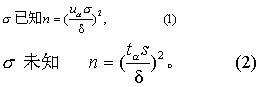 释义 | 样本含量估计 样本含量估计抽样研究中,每个样本所包含的调查或受试对象数称为样本含量。在统计研究的抽样设计中要考虑样本含量问题。样本含量过少,所得指标不够稳定,结论也缺乏充分的根据;样本含量过多,会增加实际工作中的困难,对条件的严格控制也不易做到,并且造成不必要的浪费。样本含量估计是在保证研究结论具有一定可靠性的条件下,确定最少的实验或调查单位数。样本含量的估计方法可分为两类:一类是作参数估计时的样本含量估计;另一类是作指标比较时,假设检验中的样本含量估计。 (2) 估计总体率: 当总体率π(π未知时可用样本率p估计)接近0.5(比如0.2~0.8)时,可按照正态近似原理用式(3)计算;否则宜用式(4)计算。式(4)对p作了平方根反正弦变换。式中n为所需样本含量;uα同式(1); p为总体率π的估计值,若同时有几个数值作参考,可取其最接近0.5者,若对总体率一无所知,则可设p=0.5;δ为容许误差;计算时角度单位用度。如例2。 例1 某单位拟用抽样调查了解该地区正常成人白细胞数的平均水平。希望误差不超过100个/mm3。据文献所载,正常成人白细胞数的标准差约1000个/mm3。如取α=0.05,问需调查多少人? 今α=0.05,t0.05,∞=1.96,s=1000个/mm3,δ=100个/mm3,代入式(2),得 即需调查385人。 例2 现欲用抽样调查了解某地小学生蛔虫感染率。要求误差不超过3%,如取α=0.05,问需调查多少人? 今α=0.05,u0.05=1.96,δ=0.03,设p=0.5。 代入式(3),得 即需调查1068人。 假设检验时的样本含量估计 (1)样本均数与总体均数比较: 单侧检验按式(5)计算,双侧检验按式(6)计算, (2) 两样本均数比较: 单侧检验按式(7)计算,双侧检验按式(8)计算。 式中n1和n2分别为两样本所需含量,一般假定两样本相等; s为总体标准差的估计值;δ为研究者提出的差值;tα、t2α及t2β的意义与尝试法步骤同式(5)及 (6),但第二次以后的尝试,自由度为前次算得两样本含量之和减2。如例4。 用上法制成不同α、β及δ/σ时所需样本含量便查表如下。 两样本均数比较时所需样本含量