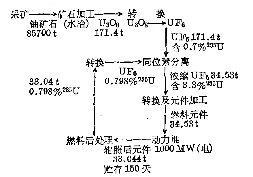 (引Proc. Inter.Symp.on the Management of Wastes from the LWR Fuel Cycle,1976) 表中所列系美国典型核设施,其生产能力为: 水冶厂每天处理矿石2000t: 转换厂每年1000t; 浓缩厂每年8.75×106吨分离功: 元件厂每年1500t; 动力堆3500MW(热功率);后处理每年1500t。 放射性物质运输和废物管理中出现事故也可能引起放射性污染。运输事故影响较大的是辐照后的元件运往后处理厂或高放废物运往处置场所时所发生,废物处置事故出现于贮存设备泄漏,致使放射性物质渗入地下水。 核工业放射性物质污染环境对居民每年所致的平均剂量,美国、加拿大为0.003mrem,英国为0.25mrem。预计将来核发电量达到平均每人1kW时,居民每人每年平均剂量为6mrem。 核工业的各个环节都可对环境造成放射性污染,但总的平均污染水平是不高的,广大居民受照射的剂量也是很小的。值得重视的是,某些环节的放射性物质排放,特别是事故条件下排放,可使局部地区造成较严重的污染,还应注意防止某些长寿命核素的积累,避免长期积累后形成严重污染。 ☚ 核爆炸对环境的放射性污染 医疗照射 ☛ |