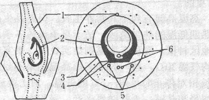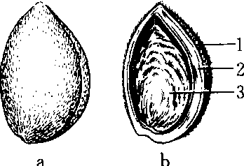 释义 | 核果hé guǒ液果的一种。如桃、梅、李等。1903年汪荣宝等《新尔雅·释植物》:“一胞内有一子或二子之多肉全面果,如樱桃及桃之类者,谓之核果。”1906年《博物学教科书》第一编:“核果: 自三层之果皮而成,外皮薄,中皮厚而多肉,内皮为坚硬之核,梅、桃、李等属之。”1908年《最新农业教科书》卷四:“核果谓梅、桃、李、杏、枣等。” 果实 果实果(果子;~皮;~仁;水~;鲜~;干~;苦~;百~;真~;假~;裂~;闭~;硬~;坚~;野~;核~;瓠~;瘦~) 华 实(结~;秋~;野~) 另见:生 熟 采摘1 收获1 结果1 ☚ 果实 各种果实 ☛ 核果drupe由单心皮、周位花、上位子房发育而成, 中央具硬核的肉质果。属真果。心皮边缘接合处为缝合线。 图 2 欧洲李幼果的纵切面和横切面 1. 中央心皮束; 2. 胚珠; 3. 中果皮(果肉);4. 内果皮(果核); 5. 侧生心皮束; 6. 胚珠束 中果皮肥厚多汁, 由薄壁组织形成, 细胞大, 间隙发达。果肉中有网状分布的维管束, 果肉细胞中含有糖、酸、维生素、蛋白质、脂肪及矿质元素等多种营养成分, 是主要的食用部分。有些种和品种的果肉细胞中还含有色素, 成熟时红、紫色品种果肉红色或近核处红色者, 多含花青素;黄色品种主要含有色体。果肉质地有溶质和不溶质之分, 溶质型品种, 成熟时果肉细胞解体。有的仁用种或品种, 如扁桃、仁用杏等, 中果皮汁少味劣, 不堪食用。 内果皮由子房壁衍生的厚壁细胞形成, 其中有维管束分布。内果皮的细胞, 在幼果生长的第Ⅰ期时完成分裂, 至第Ⅱ期逐渐硬化, 形成坚硬的核。多数桃的品种, 核表面有沟纹或点纹; 樱桃、李、杏及少数桃品种如光核桃, 表面光滑。依内果皮与中果皮分离的难易, 有粘核和离核之分, 也是品种特性之一。核内为心室, 多具有2个胚珠,通常1个退化, 1个发育成种仁,少数形成双仁。幼果有胚乳, 随着胚的发育,胚乳逐渐解体, 成为无胚乳种子。 核果drupe具有坚硬果核的一类肉质果。由单雌蕊或复雌蕊的上位子房或下位子房发育而来,外果皮薄,中果皮厚,多为肉质化,内果皮石质化,由石细胞构成硬核,含1粒种子。如桃、梅、李、杏等。核桃为2心皮下位子房发育成的核果。 苦扁桃的核果 a.果实外形 b.去掉一半果肉的果实 1. 外果皮 2.中果皮 3.内果皮 核果 核果heguo肉果中的一类,一般内果皮木质化形成核。果皮明显分为3层,一般外果皮薄,中果皮肉质,是人们食用的部分,内果皮由石细胞组成,常呈木质化,特别坚硬,如桃、杏、李、枣、橄榄等。