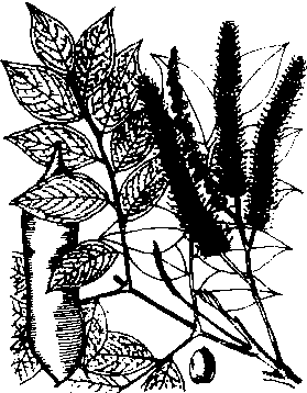 格木ford erythrophloeumErythrophloeum fordiiOliv.,又称铁木。豆科,格木属。常绿大乔木。高达25 m,胸径1 m。幼时树皮灰褐色,老则深灰褐色,微纵裂。小枝被黄褐色皮孔。二回偶数羽状复叶,羽片2~3对;小叶互生,9~13,卵形或卵状椭圆形,长3~8 cm,全缘,两面无毛或中脉上疏被毛。穗状花序组成圆锥花序,长13~20 cm,花白色、子房具柄。荚果扁平,长圆形,长10~18cm,宽3~4cm,厚革质,黑褐色。种子扁椭圆形,黑色。分布于贵州、广西、广东、海南、福建、浙江、台湾等省区,散生于海拔800 m以下低山丘陵疏林或林缘;越南也有分布。生长尚迅速,在干旱瘠薄处生长不良。中国著名硬木之一,有“铁木”之称,广西有经历400多年的“真武阁”,至今完好无损,可见其坚固耐用。大材用于高级家具、造船、桥梁;小径材做秤杆、算盘等。