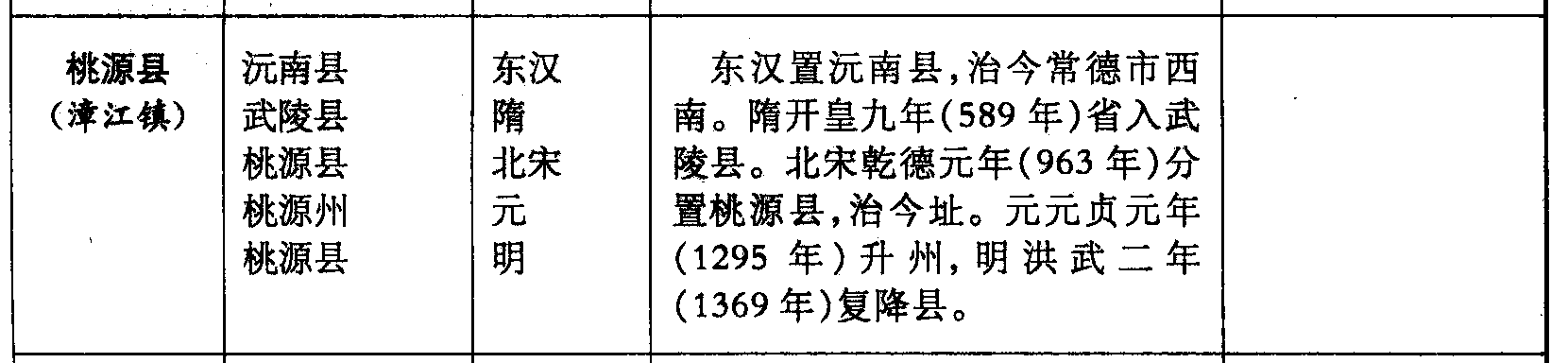 桃源县(漳江镇)沅南县武陵县桃源县桃源州桃源县东汉隋北宋元明东汉置沅南县,治今常德市西南。隋开皇九年(589年)省入武陵县。北宋乾德元年(963年)分置桃源县,治今址。元元贞元年(1295年)升州,明洪武二年(1369年)复降县。
