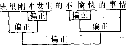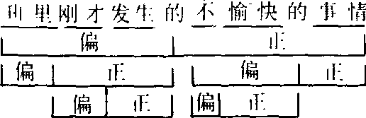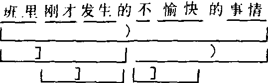 以符号代替文字标示结构成分的组合关系,更具直观感。其中,)标示定中关系,]标示状中关系。此外,还有:用>标示述补关系,用‖标示主谓关系,用|标示述宾关系,用+标示联合关系,用=标示同位关系,用S标示双宾关系,用⋮标示连谓或兼语关系, 用V表示介宾关系,等等。