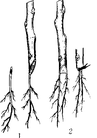 释义 | 桑树根接法mulberry root grafting桑树嫁接法之一。有撕皮根接、广秧接、简易根接等。用粗壮良种桑接穗条,接以实生苗的主根或侧根,使愈合成活。 图1 撕皮根接 1.揭皮 2.揭皮后的接穗 3.削成的接根 4.插接根 5.扎缚 图2 简易根接 1.马耳形带根法 2.楔形带根法 图3 广秧接 1.接穗 2.接根 3.插接根 4.嫁接后的栽植 |