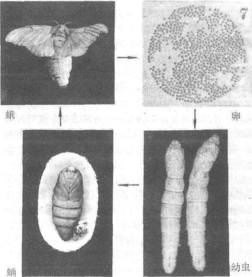 释义 | 桑蚕sāngcán家蚕。参见75页“蚕”。 黄栗留, 看我麦黄葚熟。/三月三日晴, 桑上挂银瓶; 三月三日雨, 桑叶无人取。/三月思种桑, 六月思筑塘。/寒食过了无时节, 娘养花蚕郎种田。/斧头自有一倍叶。/腊月栽桑桑不知。/雨打石头徧,桑叶三钱片。 ☚ 移树无时, 莫教树知。 黄栗留, 看我麦黄葚熟。 ☛ 蚕 蚕蚕(蚕妇;蚕姬;~丝;~蛹;~沙;家~;桑蚕;柞~;梓~;蓖麻~) 蟓 龙精 女儿 神虫 螝蛾 马首 含丝虫 马头娘 另见:丝 丝织物 ☚ 益虫 害虫 ☛ 桑蚕mulberry silkworm又称家蚕,简称蚕,以桑叶为食料的吐丝结茧的经济昆虫之一,鳞翅目,蚕蛾科,学名为Bombyx mori Linnaeus。桑蚕起源于中国,由古代栖息于桑树的原始蚕驯化而来,与中国现今食害桑树的野桑蚕(Bombyx mandarinaMoorc)同源,染色体都是28对。桑蚕的发育温度是7~40℃,饲育适温为20~30℃,主要分布在温带、亚热带和热带地区。 桑蚕发育阶段 桑蚕属寡食性昆虫,除喜食桑叶外,也能吃柘叶、榆叶、鸦葱、蒲公英和莴苣叶等。蚕所必需的营养,有蛋白质、碳水化合物、脂类、维生素、无机盐和水分等。这些在植物叶中均存在,但桑叶中含量丰富,且桑叶生长过程中营养成分的变化,正适合桑蚕生长发育的生理要求,特别是桑叶中存在着促进桑蚕取食的诱食、咬食和吞咽作用的化学物质(见蚕的摄食)。因此,桑叶是蚕最适合的天然食料。桑叶的化学组成也最适于蚕的营养需要,蚕食桑后,幼虫生长迅速,在适温条件下,一头蚕自孵化至吐丝结茧,仅22~26天,约食下桑叶20~25克(合干物5~6.2克),一般经四次眠和蜕皮,至生长极度时,体重约增加1万倍。 吐丝结茧是桑蚕适应环境而生存的一种本能。刚孵化的蚁蚕即能吐丝,以利觅食和防止跌落; 每次眠前也是先吐丝于蚕座,以固定蚕体,便于蜕皮; 熟蚕吐丝结茧,以便在停止取食后,在茧壳保护下安全化蛹和化为成虫。从蚕的生理上说,吐丝结茧是排除它体内过剩的氨基酸,避免氨基酸中毒死亡的一种排泄作用。末龄幼虫的桑叶食下量占整个幼虫期的85%以上,在末龄第3日以前食下的桑叶,主要用于建造蚕体,合成丝物质的丝腺重量不到体重的5%;第4日以后蚕体生长已近极度,对蛋白质的需要量日益减少,随着大量食下桑叶,体内氨基酸大量过剩。蚕在末龄期,即借丝腺的迅速增大和大量合成丝物质来消除体内氨基酸过剩的矛盾; 因此在4~5日内丝腺生长达体重的45~50%,比蚁蚕的丝腺增重约16万倍。如果封闭蚕的吐丝孔,阻止熟蚕吐丝结茧,它就会因氨基酸中毒而死亡。 桑蚕茧可缫丝,丝是珍贵的纺织原料,在军工、交电等方面也有广泛用途。蚕的蛹、蛾和蚕粪也可加以综合利用,是多种化工和医药工业的原料。 桑蚕silkworm,mulberry silkwormBombyx moriL. ,又称家蚕,简称蚕。以桑叶为食料的吐丝结茧的经济昆虫。鳞翅目,蚕蛾科。桑蚕起源于中国,由古代栖息于桑树的原始蚕驯化而来,与中国目前食害桑叶的野桑蚕(Bombyx mandarinaMoorc)同源。桑蚕是完全变态昆虫,一生经过卵、幼虫、蛹、成虫4个形态和功能上完全不同的发育阶段。桑蚕属寡食性,除喜食桑叶外,也能吃柘叶、榆叶、鸦葱、蒲公英和莴苣叶等。幼虫食桑后生长迅速,一头蚕自孵化至吐丝结茧,仅22~26日,约食桑叶20~25 g(桑叶干物重6~6.2 g)。吐丝结茧是桑蚕适应环境的一种本能。熟蚕吐丝结茧后在茧壳保护下安全变态、化蛹和羽化。从生理上说,吐丝是排除蚕体内过剩的氨基酸,避免因血液中氨基酸过多中毒致死的一种排泄作用。桑蚕茧可以缫丝,丝是珍贵的纺织原料,在军工,交电等方面也有广泛用途。蛹、蛾和蚕粪可综合利用,是多种化工和医药工业的原料。 桑蚕昆虫纲鳞翅目蚕蛾科吐丝昆虫。又称家蚕,习称蚕。起源于中国。野生蚕经过人类长期的培育和选择,逐渐被驯化为今天这种具有很高经济价值的桑蚕。以桑叶为食料,生长后期吐丝作茧化蛹。茧可缫丝,主要用于织绸,是优良的纺织原料,在军工、交电等方面用途广泛。蛹和蚕粪还可综合利用。四川养蚕历史悠久,远在4000多年以前,栽桑、养蚕、缫丝、织绸已成为劳动人民生产活动中的重要内容。全省23个市 (地、州) 中的22个市 (地、州) 有蚕业生产,栽桑养蚕的县(市、区) 有160多个,约占全省县 (市、区) 总数的80%。全省主要有六大蚕区: 盆中北部丘陵蚕区、盆南部丘陵蚕区、盆东部平行岭谷蚕区、盆西低山平原蚕区、盆周山地蚕区、攀西亚热带干热河谷蚕区。有蚕种场119个,蚕种冷库14座,每年制种900余万张,蚕种自给有余。多为春、夏、秋、晚秋四季饲养,在北部和高山地区为三季饲养。全年养蚕中,春蚕占35%~40%,夏蚕占20%~25%,秋蚕占30%~35%,晚秋蚕占5%~10%。1978年以来,四川桑蚕生产稳步发展,产茧量每年以10%左右的速度增长,到1994年,产茧21.4万吨,约占全国产茧量的1/3,占世界产茧量的1/5,成为全国乃至世界的原料基地。全省涌现出一大批蚕茧生产主产县,每年产茧5000吨以上的县3个,最高的产茧量达1万吨; 产茧2500吨~5000吨的县16个; 产茧1000吨~2500吨的县45个; 产茧500吨~1000吨的县28个。四川蚕业生产存在着蚕茧单产和质量不高的问题。1994年蚕茧平均单产仅20.5千克,茧丝长924.8米,解舒率51.95%,干毛茧出丝率34.33%,在市场竞争中处于不利地位,极大地影响了全省蚕丝绸行业的整体效益。 桑蚕即“家蚕(幼虫)”。 桑蚕昆虫纲鳞翅目蚕蛾科吐丝昆虫,又称家蚕。起源于中国。蚕有28对染色体。一生经历卵、幼虫、蛹