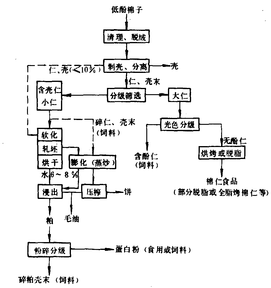 释义 | 棉子油制取加工cottonseed oil extraction从棉子种仁中提取油脂,制取棉子饼粕的过程。棉子约占皮棉重量的60%~62%,经轧花后的棉子含短绒8%~14%、壳30%~50%、棉仁48%~60%。整子含油14%~26%,棉仁含油28%~39%、蛋白质30%左右。普通棉子中含有0.8%~2.35%(干基)的游离棉酚色腺体(C30H30O8)(简称棉酚),而低棉酚的棉子中棉酚含量低于棉酚的食用安全国际标准(为0.04%)。与普通棉子相比,低棉酚的棉子颗粒较大,仁中的含油率为31.67%~43%、蛋白质含量为34.44%~37.68%,利用价值更高。 图1 普通棉子加工工艺流程 图2 低酚棉子加工工艺流程 精炼工艺 棉子油属半干性油。普通毛棉油呈红褐色,含1%左右的棉酚色素及其衍生物,酸价较高。精炼时一般须经碱炼脱酸(或混合油精炼),同时去除棉酚。而低酚棉子油中棉酚含量低,其中色素可经轻度碱炼和水化脱胶处理即被消除。低酚毛棉油精炼的工艺流程见图3。 图3 低酚毛棉油精炼工艺流程 饼粕利用 普通棉子中含有棉酚有毒物质,必须脱毒后方可食用或作饲料。从饼粕中提取的棉酚可用于医药或其他工业。主要有三种棉子脱毒方法: ❶高温水热处理法(如蒸炒、压榨、蒸脱烘干等)。可使有毒性的游离棉酚与蛋白质中氨基酸等化合成毒性低的“结合棉酚”,但蛋白质同时变性使营养成分有所损失。 ❷溶剂浸出法。即利用混合溶剂(如乙醇-己烷、丙酮-己烷、二氯甲烷-己烷等)进行选择性低温浸出,将油脂与游离棉酚和蛋白质等进行有效的分离。 ❸化学添加剂法。例如把硫酸亚铁、碱液或者尿素等添加剂加到饼粕中,使棉酚破坏或变成结合状态,通常应用于饲料饼粕。此外,尚有发酵处理法,旋液分离色腺体法等,可供选用。 |