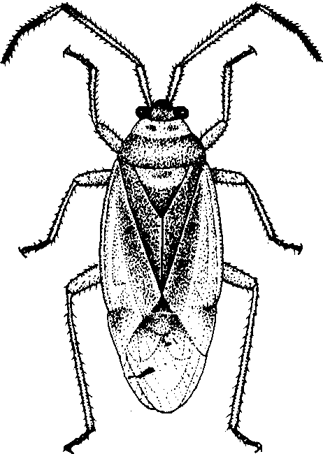 苜蓿盲蝽 学名Adelphocoris lineolatus Goeze。成虫体长约7.5毫米,体黄褐色,前胸背板后缘有两个黑圆点。小盾片中央有两个半“丁”形黑纹。若虫体暗绿色,有黑色斑点和刚毛,触角黄色,末端较浓,腹节有黑斑。胫节有黑刺。卵长茄形,乳白色。南北棉区均有发生,以北方棉区发生较重。年生3~4代,以卵在苜蓿、棉秸、枸杞等茎秆内越冬,越冬卵4月上旬开始孵化。卵发育起点5.2℃,有效积温213日度。若虫发育起点6.7℃,有效积温410日度。第一代若虫历期约30天,5月中旬羽化,成虫寿命约26天。第二代卵期约13天,若虫期约18天,7月上旬羽化,成虫寿命约14天。第三代卵期约10天,若虫期约18天,8月上旬羽化,成虫寿命约20天。第四代卵期约11天,若虫期约16天,9月中旬羽化,成虫寿命约16天。成虫在0~40℃均能生活,43℃时开始死亡,45℃仅能存活12~15分钟,15℃时寿命达46天,但不能产卵。20℃时产少量卵,25℃时产卵最多(107粒),37℃又下降。主要寄主有苜蓿、豆类、棉、马铃薯、枸杞、芝麻、向日葵、蓖麻、大麻、菠菜、胡萝卜、油菜、芹菜、南瓜、荞麦、龙葵、玉米、小麦等。 中黑盲蝽 学名Adelphocoris suturalis Jakov-lev。又名棉金毛盲蝽。成虫体长约7毫米,褐色,前胸背板中央有两个小黑圆点,小盾片与爪片的大部黑褐色。若虫体深绿色,有黑色刚毛,触角和头部赭褐色。卵长茄形,淡黄色。主要分布在长江流域棉区,年生4代。以卵在苜蓿和杂草寄主内过冬。越冬卵4月上旬孵化,若虫在苜蓿、苕子及蒿类杂草上活动。卵发育起点5.4℃,有效积温217日度。幼虫发育起点9℃,有效积温329日度。第一代成虫5月上旬出现,第二代6月下旬,第三代8月上旬,第四代9月上旬。主要寄主有棉、苕子、胡萝卜、马铃薯、茼蒿、芹菜、蚕豆、甜菜、黄花苜蓿、聚合草、大麦、小麦、杞柳、桑、向日葵等。 赣棉盲蝽 学名Creotiades gossypii Hsiao。成虫体长约6.7毫米,浅草黄色,前胸背板后缘有不规则的浅褐小点,后部中央两侧各有一圆形小斑点,喙顶端黑色。若虫翅芽内侧基部具黑斑。常见于江西和云南两省棉田,中国其他棉区较少见。 牧草盲蝽 学名Lygus pratensis Linnaeus。成虫体长约6毫米,黄绿色,前胸背板有橘皮状刻点,侧缘黑色,后缘有黑纹,中部有4条纵纹,小盾片黄色,中央黑褐凹陷。若虫体绿色,触虫末端红黄色。前胸背板和小盾片上各有两个黑圆点。第三腹节背有一黑圆点为臭腺。主要分布在西北河西走廊及新疆棉区。年生4代。以成虫在各种杂草、枯枝落叶、树皮裂缝内越冬,平均气温达9℃时开始活动,4月上旬越冬成虫便在小麦、菠菜、甜菜、白菜、萝卜、甘蓝种株上大量出现,4月末产卵于藜科及十字花科植物上。第一代成虫5月下旬出现,第二代7月上中旬,第三代8月底、9月初,第四代10月下旬,羽化后即过冬。第一代成虫迁入棉田为害,第三代成虫由棉田向地肤(扫帚菜)、碱草等杂草上迁移。成虫产卵期4~7天,越冬代产卵期39天,最长57天,其余各代11~25天,成虫寿命17~27天,成虫产卵量可达300粒以上。卵发育起点10℃,有效积温126日度。第一代卵期约18天,第二代约9天,第三代约8天,第四代约12天。若虫5龄,发育起点8.5℃,有效积温200日度。第一代若虫期约18天,第二代约11天,第三代约12天,第四代约23天。主要寄主为棉、地肤、碱草、菠菜、甜菜、蒿类、豆类、大麻、向日葵、烟草、小麦、玉米、柳、洋槐等。 为害习性 常为害棉花的顶芽、边心、花蕾及幼铃,吸食棉株汁液。棉苗真叶芽甫露,盲蝽就用针状口器刺吸幼芽,顶芽受害枯焦发黑成无头苗;真叶期为害顶芽成黑斑,组织坏死;顶芽叶片伸展时,坏死部分成孔洞,近主脉处叶片破碎。被害叶片破孔边缘愈合成为特殊的叶切状,与一般咀嚼口器昆虫造成的虫孔不同。若为害严重。叶切状叶片连续多片,使棉株破叶累累呈“破叶疯”,现蕾稀少,影响产量。果枝伸展后的边心嫩叶也会出现上述类似症状,叶片受害后主脉扭曲,叶片不能平展(图3)。 图3 棉盲蝽为害状 6种盲蝽中绿盲蝽为害造成的破叶疯症状最明显;中黑盲蝽、苜蓿盲蝽和三点盲蝽主要造成无头苗和幼 ![]() 发生规律 棉田盲蝽是一个混合种群,各地种群组成不同。黄河流域及其以北棉区主要种类是苜蓿盲蝽、三点盲蝽和绿盲蝽,长江流域棉区是绿盲蝽、中黑盲蝽和苜蓿盲蝽,新疆棉区主要是牧草盲蝽。不同年度之间出现的主要种类会有变化。影响棉田盲蝽发生数量的有关因子有: ❶越冬后第一代虫源基数与6月份棉田虫量关系。6月份棉田虫量和为害程度取决于4月中旬苜蓿田内的虫量。秋季苜蓿刈割迟的地方苜蓿田内残留虫量明显减少,翌年春天发生也显著减轻。江苏第一代幼虫主要在蚕豆和苕子上繁殖,2代扩展到胡萝卜、马兰等寄主,2代羽化后夏熟作物都已衰老,遂迁移棉田为害。由于蚕豆面积大,因此蚕豆植株上的发生量对棉田影响最大。 ❷盲蝽为害与寄主转移规律。正值现蕾开花的寄主植物对盲蝽引诱最大。1代成虫主要在春季豆科植物上活动,以后各代成虫随寄主植物的开花程序而向马铃薯、胡萝卜、茼蒿上转移,6月中下旬夏熟寄主相继成熟枯萎,棉花正值现蕾,常形成棉田为害高峰。 ❸温、湿度及雨量对盲蝽发生为害的影响。绿盲蝽的卵发育起点最低,越冬卵发育最早,田间幼虫出现及发育也较其他盲蝽在先,1代成虫出现时棉花尚未现蕾,对绿盲蝽吸引力小,仍留在原寄主上。苜蓿盲蝽、三点盲蝽和