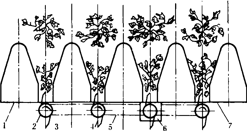 释义 | 棉花生产机械化mechanization of cotton production在棉花生产各项作业中机电动力和机具的广泛应用。机械化耕整地作业可为棉花播种和灌溉作业创造良好条件;用机械精密播种可达到一播全苗,节省种子和间、定苗劳力;机械化喷药可在大面积棉田及时防治病虫草害;应用化学脱叶催熟和机器采棉,可促使棉花早熟吐絮,增产霜前优质棉,加快采棉进度;发展现代化棉花加工可提高棉花等级,加快轧花进度,并可对各种主、副产品进行深加工,力求综合利用,增加收益。 图1 打顶机作业示意图 1.横梁;2.传动带轮; 3、4.打顶刀; 5.三角胶带;6.减速器;7.棉株导引器 机器采棉和摘铃 在中国北方棉区,机器收获棉花可分为采吐絮籽棉和霜后摘干僵棉铃两项作业;在南方棉区,由于抢播冬作物的需要,在采棉后期摘收晚吐絮青铃以加快腾地。机采吐絮籽棉,第一次约在吐絮65%时进行;第二次约在吐絮80%左右;最后是采摘残留的未开干铃或青铃。采吐絮籽棉的分次采棉机主要有美国的水平摘锭式和苏联的垂直摘锭式两种。苏联还有分层采留种子棉及采长绒棉的采棉机。摘铃机也有两种类型:美国的尼龙丝刷条—橡胶叶片斜摘辊摘铃机多用于采摘低矮株型、早熟、集中吐絮的旱作棉花,可同时采收籽棉和残留青铃、铃壳和断枝等。苏联使用的钢制棱形斜摘辊摘铃机用于采摘未开的霜后干僵青铃。机器采棉后的落地棉,可用落地棉捡拾机拾起并进行初步清理。 棉杆清理 有棉花枯、黄萎病的棉田,要用棉杆铲拔机将棉杆拔起后堆放在地面,然后用推运机运出棉田。苏联还发展了棉杆铲拔切碎机,将拔起的棉杆由铡刀滚筒切成长10~15厘米的碎段,送入挂车内运出。美国则采用水平转刀式或甩刀滚筒式棉杆粉碎机将棉杆就地粉碎,然后耕翻入土作肥料。 籽棉清理加工 包括用籽棉干燥机将纤维含水率降到6.5~8%;用籽棉清理机和重杂物沉积器清除混入籽棉中的不孕籽、僵瓣、铃壳、果枝、叶片、砂石等杂质;用轧花机将清理后的籽棉分离成皮棉和棉籽;用皮棉清理机进一步清除杂质;最后用皮棉打包机打成便于运输和贮存的棉包。此外,各项配套作业也都实现了机械化。如苏联采用挂车列车运棉、卸棉;用接棉输棉机接棉及堆垛;用扒垛吸棉机将籽棉从棉垛上扒下并气吸送入加工厂。美国则用棉模成型机将收获的籽棉在地头或路边堆放成长方形棉垛(棉模);轧花时用棉垛装卸运输车将棉垛直接送到加工厂的输送带上。 棉花副产品加工 棉花副产品主要包括由带绒棉籽、棉杆、棉根加工成的各种产品。带绒棉籽由脱绒机脱取短绒,可用作纺织工业、塑料工业和化学工业的原料。脱绒后的棉籽经剥壳、清理、磨碎、蒸熟后可提取食用油或工业用油。提油后的棉仁饼或棉粕在脱毒机组中用硫酸亚铁脱毒后制成蛋白粉饲料,也可用旋液分离法除掉棉酚色素腺体,制成食品、食品添加剂或饲料用蛋白粉。 新鲜棉杆经去枝、锤杆、剥皮、浸泡、发酵脱胶、敲打漂洗并干燥后,制成棉杆皮纤维,可用以制麻袋和绳索;棉杆芯和棉杆皮还可用于造纸或作纤维板。 棉籽壳经粉碎、水解后可用作生产食用菌的培养基或化工原料;棉根皮和棉籽仁中提取的棉酚可用作医药工业的原料。 80年代以来苏联还从棉花加工厂 ![]() 图2 棉花有机杂质回收加工车间工艺流程 1. 气力输送装置; 2.卸料分离装置; 3、13.风机;4.旋风除尘器; 5.两级旋风除尘-卸料器; 6.靠近饲料车间的回收装置; 7、9.饲料原料小车; 8.灰尘-矿物组分小车; 10.气力输送器; 11.输送器; 12.最终清除无机杂质并干燥的装置; 14.纤维物料清选装置 棉田作业机组的配套 棉田作业机组采用中耕型轮式拖拉机或自走底盘,具有80厘米以上的通过间隙。用于田间管理和收获作业的拖拉机配用窄轮胎,并加装分行扶株的地轮护罩;机体下部及两侧应具有光滑流线型外形。并加装护板,使机组能在后期封行棉田中行走作业。拖拉机的转弯半径要小,轮距可调;用于播种、田间管理、铲拔棉杆等作业的拖拉机,4~6行约需功率18~30千瓦;配两行采棉机作业时,约需功率26千瓦以上。 棉田用播种、中耕、植保、打顶、采棉、摘铃、棉杆铲拔等作业机组一般为悬挂或半悬挂式,以保证较高的对行准确性。机具的突出部位加装护板,以防钩拉、损伤棉枝。 发展趋势 应用液压、气动、电子、激光、光电、电—液压传动、遥感、遥控等项技术,使棉田平地、精密播种、施肥、喷药、采棉等项作业实现作业质量监测、调整和故障报警等的自动化;使棉田中耕机和采棉机实现自动对行;棉田作业机具向轻巧、高速和联合作业的方向发展;各项辅助作业也将进一步实现机械化。此外,还将研究发展应用新的采棉原理,如气吸、振动、光电等,以提高采棉质量,降低机采籽棉含杂率,并简化采棉机的结构。 |