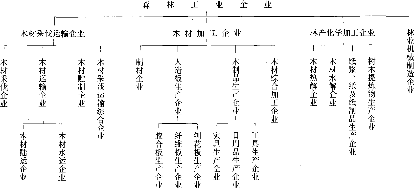 释义 | 森林工业企业forest industrial enter-prise从事木材采运、木材加工、林产化工和林业机械制造等生产经营活动,并实行独立经济核算的单位。简称森工企业。森林工业企业是林业部门的基本经济单位,是国民经济现代化建设及人民生产、生活不可缺少的物质资料——木材和其他林产品的主要生产者和经营者。 中国森林工业企业分类 国营林业局是中国木材采伐运输工业的基本组织形式,是中国木材采运工业的主导力量。全民所有制木材采运企业,是从20世纪40年代开始在东北、内蒙古解放区创建的(当时称为林务局,50年代改称为森林工业局,1958年改为林业局)。1949年中华人民共和国成立后,为适应国民经济恢复和大规模经济建设的需要,在东北、内蒙古、四川、云南、福建、甘肃等省(自治区)相继组建了一批国营木材采伐运输企业。经过多年的建设,国营林业局在数量、规模、经营范围和经营方式等方面都发生了巨大变化。截至1985年,全国国营林业局总数达131个,国营林业局已由单一生产木材的采伐运输企业,发展成为对森林资源进行立体开发、全面经营、多种利用,包含多种产业的综合性企业。它的经营范围包括:❶林木资源的培育和管护; ❷木材采伐和运输; ❸木材加工和林产化学加工; ❹林副特产品的采集、种植、养殖和加工; ❺地下资源开发; ❻旅游及其他方面的服务。 |