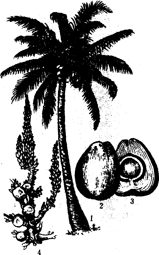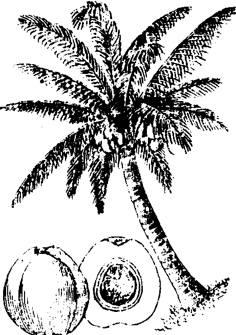 释义 | 椰子yēzi常绿乔木,树干很高,直立无枝,生长在热带。果实也叫椰子,果皮黄褐色,果壳坚硬,肉白色,内腔多汁。果肉可以吃或榨油,果汁可以做饮料。 椰子yēzi❶ 〈名〉常绿乔木,核果椭圆形,果肉多汁,含脂肪。 古代名物 > 木果類 > 果木部 > 喬木 > 胥餘 > 椰子 椰子 yēzǐ 即胥餘。 椰子【同义】总目录 椰子越王头胥馀 果实名 果实名栗子:栗(霜栗;锥~) 河东饭 ☚ 果的各部分 水果 ☛ 椰子coconut棕榈科椰子属常绿果树,乔木。又名胥余、越王头、椰標(台湾)。学名Cocos nu-cifera L.。 椰 子 1. 植株; 2. 果实; 3. 果实纵剖面; 4. 花序 椰子需高温环境, 以年平均气温27℃左右, 年降水量1300~2300毫米、地下水位1~2米、相对湿度80~90%、海拔高度低于100米的地区最适, 中国年平均气温23℃的地区也适宜种植, 15℃以下的低温持续时间长会影响产量。对土壤要求不严, 以肥沃的冲积砂壤土最好,砖红壤、砂壤土和珊瑚土,pH5~9适宜。 主要品种 椰子用种子繁殖, 多异花授粉, 变异大, 分类较难。1949年纳拉扬纳(G.V.Narayana)和约翰(C.M.John.)按植株高矮和授粉形式分为两个类型,即高种椰子(Tall Types)和矮种椰子(Dwarf Ty-pes)。后来,里扬纳吉(D.V.Liyanage)认为有一个中间类型(var.anramfiaca)。 高种椰子植株高达20米, 树干基部膨大(称“葫芦头”), 异花授粉, 植后7~8年开花结果, 产量高, 椰肉厚,质量好,含油率高, 经济寿命长达70~80年。主要变种有❶蒂皮卡(var. typica)。是主要商品栽培种。 ❷斯皮卡塔(var.spicuta)。花序不分枝或少分枝, 印度尼西亚称穗状椰子。 ❸安得罗佩纳(Andropena)。花序多分枝。 ❹马卡普纳(Makapuna)。因果腔充满可口松软的胶状体,又称实心椰子。 ❺塔格纳姆(Tagna-nam)。未成熟的椰子果皮甜,可食,又称甜皮椰。 矮种椰子高5~10米,自花授粉, 植后3~4年开花结果, 果小而多, 椰肉软而薄, 含油率低, 经济寿命30~40年。主要作鲜果、杂交亲本和观赏用。由于果实和叶片颜色不同, 又有红矮、黄矮和绿矮之分。主要有两个变种: ❶那那(var. nana)。植株矮小。 ❷爪哇尼卡(var. javanica)。树干较粗壮, 果实较大。 中间类型植株高度介于前两类型间, 植后7~8年结果, 自花授粉, 椰肉薄而软, 水多而甜, 主要作鲜果和观赏用。 栽培技术要点 用椰果繁殖,催芽育苗。海南高种和矮种椰子采果后40~50天发芽。西非高种和PB121杂种需90~100天才发芽。当芽长约20厘米时移入苗床或容器育苗。苗龄8~12个月、苗高80~100厘米即可选羽裂早、茎粗、叶脉明显、无畸形的壮苗在雨季初期定植。一般高种椰子每公顷植150~180株, 杂交种200~210株, 矮种椰子225~240株。植株3年生以前生长慢, 抗性差, 要及时除草施肥, 并防兽害。为充分利用土地, 可间种咖啡、可可、胡椒等作物, 也可间作豆科绿肥;或在行间种植热带葛藤等覆盖植物,以保持椰园水分, 并增施氮、磷、钾肥, 促使椰子速生快长。 中国椰子病虫害不严重, 主要有二疣犀甲为害心叶, 严重时破坏生长点, 致植株死亡。其他产椰国家严重病害主要有: 败生病, 为慢性毁灭性病害, 发现于菲律宾, 病因不明, 难防治; 致死性黄化病, 为急性毁灭性病害, 病原为类菌质体, 发现于加勒比海地区; 致死性萎蔫病,维管束被一种雏体鞭毛虫阻塞,致叶片枯萎、植株死亡, 发现于巴西、南美诸国, 无有效防治方法。在引种时必须注意上述病害的检疫。 经济价值 每100克椰子肉中含碳水化合物15克,蛋白质近5克, 维生素B1173微克, B5103微克,α-生育醇700微克, γ-生育醇750微克。主要加工成椰干、椰丝、椰块、椰片和椰油, 作糕点和糖果的原料。椰油可作食用油和人造奶油, 也可制优质肥皂, 其副产品甘油含量达12~13%。椰汁营养丰富, 可作清凉饮料。20世纪60年代以来, 用新鲜椰子湿法加工生产椰蛋白、椰奶粉、无色椰子油、椰子粉等。椰果纤维可制绳索、扫把和地毯, 和橡胶并用加工床垫、沙发垫和汽车坐垫。椰壳可加工活性炭、制乐器和椰雕等。椰树质硬花纹美, 可作家具和建筑用材。椰子综合利用的产品已达360多种。 椰子椰子是海南“四大绿宝” (椰子、橡胶、胡椒、腰果) 之一,是海南一大特产。据史料记载,从汉代起,海南就有椰子种植,至今已有2000多年历史了。椰子喜欢在热带海风吹拂的环境中生长。椰子树是常绿乔木,有高矮之分,又有青椰和赤椰之别,青椰为椰果未成熟时呈青绿色,赤椰为椰果未成熟时呈赤黄色。它一般栽培8年后开始结果,一年四季花开花落,果实不断,一株树上同时有开花、幼椰果、嫩椰果、老椰果,真是“兄弟相聚、老少同堂”,盛产期20年以上,寿命长达80年,甚至100年。盛产期每株结果多的有100多个,每年秋天是椰子收获的旺季。椰子肉、汁都是嫩的比老的好吃,汁要喝当场采摘的椰子汁为妙,并最好是在日照不强的上午10时前为最清甜解渴,中午或下午就有些酸口了。椰子用途广泛,据不完全统计,它的用途有360多种。椰肉鲜甜,营养丰富,可生食,可制成椰蓉、椰奶,可配制椰子糖,椰子酱罐头。椰子肉炖鸡是海南的佳肴之一。椰子还可酿酒。明代著名作家吴承恩在他的 《西游记》 中曾多处提到“椰子酒”,可见椰子酿酒已有很长历史了。目前海南生产的椰子酒有两种,一种是用椰乳汁冲入米曲酒配制而成的 “椰林曲香酒”,另一种是以椰子水加入白糖经过发酵而成的“椰香液”,椰子水可直接饮用,每个椰子大约有800毫升的水;椰根可入药,老椰树干