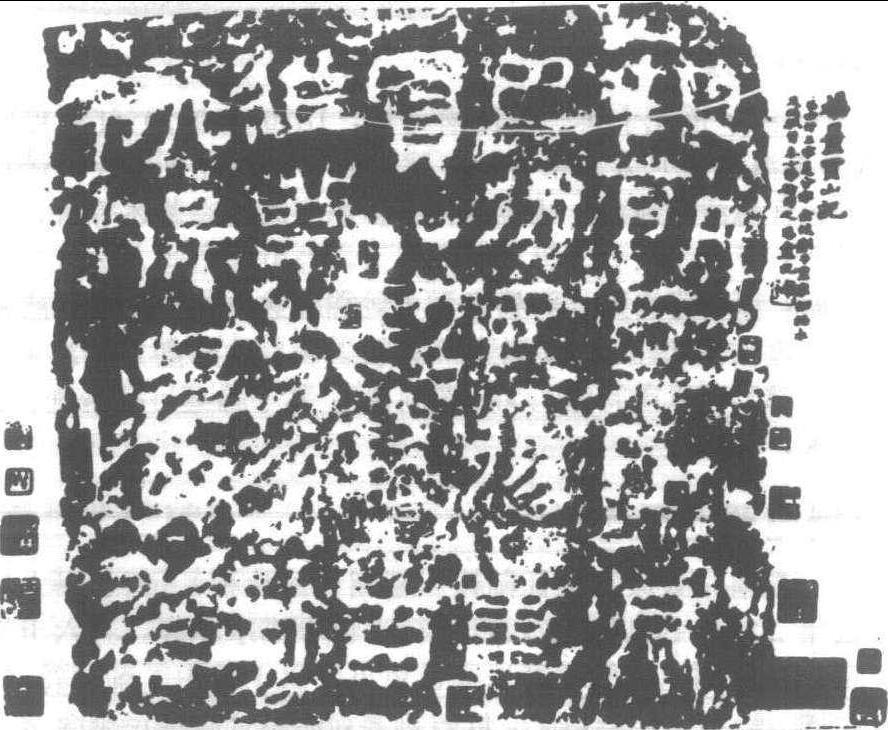 楊𣊹買山記 (局部) 亦稱<漢巴州民楊𣊹買山地刻石>。 西漢·地節二年(前68)刻。有隸書五行二十七字:“地節二□年正月,巴州民楊𣊹買山, 值錢千百, 作業□示子孫, 永寳其毋替。”有二字泐。清方朔謂此書云:“結構渾樸,波礫勁拔,意在篆、隸之間。與〈五鳳二年刻石〉 (〈魯孝王刻石〉)不相上下。”此恐屬最古之隸書刻石遺迹,亦為研究漢代土地買賣之重要资料,洵值珍愛。石在四川巴縣,清·道光間 (1821——50),為吴興錢安甫訪得,後歸吴重光,咸豐十年(1860)毁于火。此石趙叔撝(之謙)、葉昌熾、羅振玉均以為偽作,羅氏謂:“漢有巴郡無巴州,與史不合。” 有翻刻本,可亂真。 |