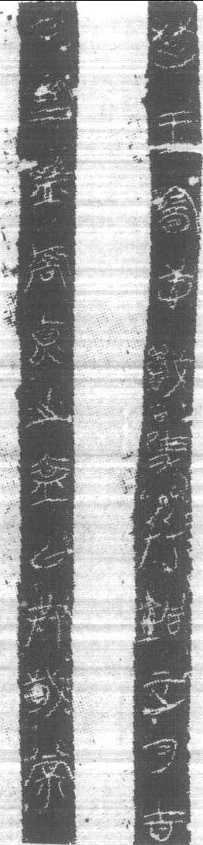 楚王盦盂鼎銘 (局部) 楚國文字。楚始祖熊繹,受周成王(一說康王)分封,建都丹陽 (今湖北秭歸東南)。春秋時,楚為“七雄”之一,據有湘、鄂、皖、江、浙諸地,位于中國南部,時人目為化外蠻夷族。爾後楚國注重吸取殷、周文明,并發展之,遂漸形成其獨立文化體系,“楚文” 即其一也。青銅器亦隨之分化,“楚王盦盂鼎”等遺物上,所刻之楚國獨特文字,實足驚人。近人陸續發掘出楚文遺物,三十年代于湖南長沙楚墓中出土 〈楚帛文〉,繼有 〈長沙楚簡〉、〈信陽楚簡〉、〈江陵楚簡〉等楚物近四百件,再顯于世。由是漸顯“楚文”之骨格,其綫條清勁,書勢輕妙,頗呈楚簡之特色。黄鴻圖評云: “楚文無不雄强。均用直筆,下筆若鑄,點畫如鐵,有横掃千軍、辟易萬人之概。” |