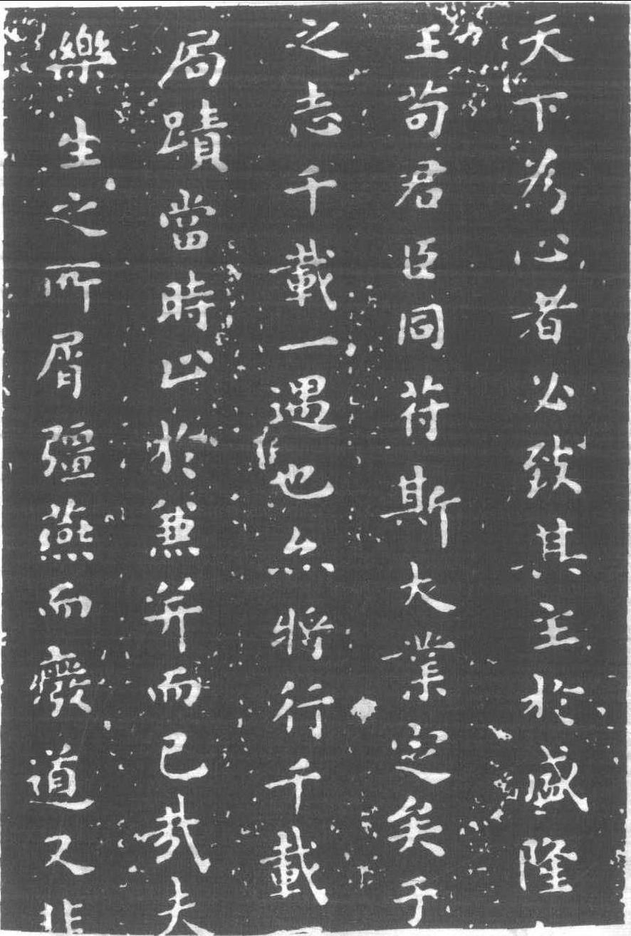 樂毅論三國魏夏侯玄撰,東晉王羲之書。傅係王羲之親書於石。小楷四十四行,末有 “永和四年 (348) 十二月廿四日書付官奴”一行,若然,則屬羲之四十二歲時書。至於“官奴”二字,吴廷有釋說:“官奴乃大令 (王獻之) 小字。大令喜作放縱之書,此書方正齊整,不失法度,蓋抑之。”是作誠方正齊整之極,自古以為王書楷法第一,廣為流傳。隋智永《題右軍藥毅論後》曰:“〈樂毅論〉為正書第一,梁世模出,天下珍之。”唐孫過庭 《書譜》 謂: “寫<樂毅>,則情多怫鬱。”唐太宗(李世民)購求王羲之書皆紙本,獨此為石刻,酷愛之,崩薨後殉葬昭陵。傳刻本甚夥,主要有如下三種: (1)海字本——太宗昭陵後為温韜所發,并得此石,石已破裂。宋代歸高紳,束之以鐵,其末行僅存“海”字,因而拓本稱 “海字本”,爾後不知亡存。刻入 《博古堂》、《停雲館》諸帖。 (2) 梁樵本——末有“异僧權” 三字。刻入《餘清齋》、《鬱岡齊》等帖。筆法多古意。與《貞觀書目》所記一致,允推刻本之冠也。 (3)唐橅本——此本“世民”二字皆缺筆。刻入《快雪堂帖》等為别一種本。書法秀勁可愛。