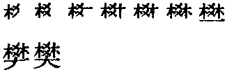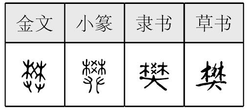 【提示】木,中间是竖,不是竖钩; 位于字或部件的左边时,末笔的捺改点。上右的 “木” 和大的末笔原本都是捺,为避重捺,“木” 的末笔捺改点。爻,位于字的中部时,末笔的捺改点。 △樊fán15画 大部 〈书〉 (1) 篱笆: ~篱。 (2) 关鸟兽的笼子: ~笼。 樊 ☚ 部">  部 共部 ☛ 樊fán周代金文从林,中从爻,下从两“又(手)”向外,是攀的本字。象用两手左右扳攀树枝。攀是小篆后造分化字,本有两手,不应再增手,如梁樑、然燃等例。周代或省爻,或从一个乂。本当国名用,姬(jī)姓。后又作姓用。因它从林从爻,象藩篱状,也当篱笆讲。组词如:樊篱。又引申为关鸟兽的笼子。组词如:樊笼。 樊★规◎常