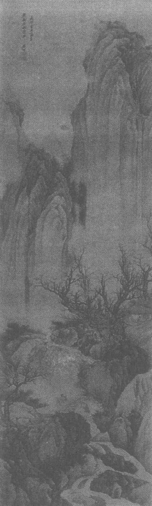 | 释义 | 樊圻秋山听瀑图轴 樊圻秋山听瀑图轴清。樊圻绘。绢本设色。纵183.6厘米,横57.6厘米。辽宁省旅顺博物馆藏。樊圻见《樊圻山涧奔流图扇页》条目。这是一幅秀丽雅致的山水画轴。峰峦迭起,雄奇壮美。飞瀑如练,直落千仞,轰然有声。远山以淡墨轻抹,秀峰下有怪异苍雄的巨石,石缝间顽强生长的树木,其叶多已落尽,而残存的饮霜红叶分外醒目。涧水奔激,跌宕而至。一石质拱桥横跨两岸,挑担的侍童行走于桥上。彼岸的坡地上有茅亭一座,亭中的两人似在侧耳倾听瀑声。所绘瀑布具有飘垂感,而涧水的湍流则具有跌荡不休的动感。山石以斧劈皴绘制,严谨、繁密,笔墨苍润,空气中的潮湿通过笔墨而流露。全图设色淡雅,其秋意令人心清气爽,荡涤肺腑,此图绘于公元1668年。