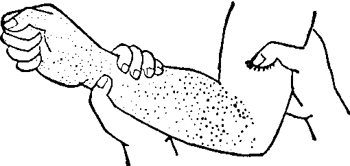 释义 | 止血(反)出血 出血←→止血chū xiě ← → zhǐ xiě出血:血管壁破损,血液流出。 止血是治疗出血的方法。出血的原因多种,治疗上可分清热止血、祛瘀止血、补气止血等。详见各条。 止血 止血中医治法。是治疗出血证的方法。由于出血的原因有多种,因此在治疗上又可分为清热止血、补气止血和祛瘀止血等。清热止血,是治疗血热迫血妄行而致出血的方法。临床症见各种出血鲜红的病症,伴有口干咽燥,舌绛唇红,脉洪数。治疗常将清热药与止血药结合起来使用,以达到治疗目的。补气止血,又名补气摄血。是治疗因气虚不能统摄血液致使出血的方法。这种出血色暗淡而稀薄,出血时间久。常伴有面色苍白,心慌气短,精神不振,四肢清冷等症状。治疗常选用党参、黄芪、白术、当归、熟地等益气补血之品来治疗,通过补气达到止血的目的。祛瘀止血,是通过祛除瘀血来达到止血目的的方法。由于瘀血停滞于内,血液不能正常运行而溢于脉外,产生出血症状。如妇女功能性子宫出血,症见下腹部胀痛拒按,月经量多,色紫黑有块,块去痛减。治疗应用当归、川芎、白芍、蒲黄、山楂炭、桃仁等活血化瘀止血的药物治疗,以达到瘀血去出血止的目的。妇女产后恶露不止,颜色紫黑有块,腹痛拒按,临床也用此法治之。 ☚ 祛瘀活血 开窍 ☛ 止血hemostasis系指对各种出血所采取的治疗措施而言。根据出血部位、损伤程度、出血速度、失血量多少不同所采取的止血方法也不同。常用的止血方法有各种压迫止血、药物止血、电凝止血、结扎止血等。 止血理血法之一。治疗各种出血病证的方法。出血可由多种原因所致,如血热妄行,脾不统血,瘀血阻滞等,故须分辨不同的原因而作出相关的止血方法。如凉血止血,益气摄血,活血止血等。即止血应治本,在止血的基础上,要根据出血的原因而加以治疗,故有“见血休止血”之说。 止血是战场救治的重要措施之一。在手术过程中和处理外伤时,应用压迫、结扎、填塞、电凝和药物等方法控制创面出血。通常情况下,出血分动脉、静脉、毛细血管出血3种。止血要针对不同出血种类,采取相应措施。 止血hemostasis手术过程中,组织的切开、分离和切除均可导致出血,因此必须进行彻底止血。常用止血法有: 止血zhǐxuè治疗各种出血证的方法。根据出血的原因和机理, 治疗上可分清热止血、祛瘀止血、补气止血等。详各条。 止血 止血止血是指发生出血后制止血液继续从血管外流的方法,是抢救和治疗的重要措施之一。止血方法的改进历来与外科进展有密切关系,至今仍在继续研究中。 图1 指压颞浅动脉 图2 指压颌外动脉 头颈部出血指压法: 头颈部较大的出血。用手指将气管旁的颈总动脉压向颈椎横突(图3)。因这种方法易引起脑缺氧,并可使脉搏变慢和血压下降,甚至引起心跳停止,故除非情况紧急,一般不宜使用。注意只可压迫一 图3 指压颈总动脉 图4 指压锁骨下动脉 侧颈动脉时间不可过长。肩与上肢出血指压法:肩部或上臂发生动脉出血,可用拇指从锁骨上窝将锁骨下动脉压向第一肋骨(图4)。上臂远端或前臂出血,可在上臂内侧肱二头肌内缘用手指将肱动脉压向肱骨(图5)。手指出血,可以压迫手指根部两侧的指动脉。 图5 指压肱动脉 图6 指压股动脉 下肢出血指压法:大腿或小腿出血,可在腹股沟卵圆窝处压迫股动脉。股动脉较粗,血流量大,常需两手同时进行压迫(图6)。 动脉出血时,指压法虽然能迅速达到止血或减少出血,但不能维持较长时间。如果伤员需转送到医院,必须改用比较能持久的止血方法,如止血带或加压包扎等。 指压法是用手指直接压迫伤口内的出血处,如颈部、锁骨上窝、腋窝等处大血管的出血。这种止血方法主要是在能施行手术的医院内采取。临时止血后,立即将伤员送到手术室进行确定性止血。 (2) 加压包扎止血法: 用数层无菌纱布或裹伤包覆盖伤口之后,再用绷带进行加压包扎。适用于静脉出血和小动脉出血。 (3) 填塞止血法: 将无菌纱布或其他急救敷料填塞在伤口之内,外用压迫绷带固定,促使血管闭塞而止血。填塞的纱布一般在2~3日取出,有的需延期取出。此法每使伤口继发感染和出血,又可增加组织损伤。故仅在不得已时用于实质脏器破裂、静脉丛出血、或凝血功能不全时。 (4) 止血带止血法:用于肢体大出血的急救。 外科止血 即用机械、物理等外科方法达到永久、确切的止法。 (1) 结扎止血法:最为常用。一般先以止血钳夹住出血点,再用线结扎。也有先以止血钳等分离血管,再用线套缚结扎。为了避免结扎线脱落,可用双重结扎或缝合结扎。但对各部位主要血管不宜采取此法,否则引起局部循环障碍。 (2) 脏器的修复或切除:实质器官的出血。如肝、脾的破裂,可用缝合、部分切除或切除的方法达到止血目的。 (3) 血管的修复或移植:大血管破裂可用缝合、修补和对端吻合的方法修复。如果血管缺损较大,不适合用上述几种方法修复时,可施行血管移植术 (常取自体静脉)或以人造纤维织物管代替缺损的血管。不仅能止血,且能恢复血运,避免因结扎而引起的组织缺血或坏死。 (4) 物理止血法: 如表浅渗血可用湿热盐水纱布敷压以达到热凝止血。烧灼和电灼能使血液和组织凝固,常用于手术创区小出血点的止血。对组织内出血早期,施用局部冷敷,使血管收缩,血流减慢,减少继续出血。冻烙和激光也
