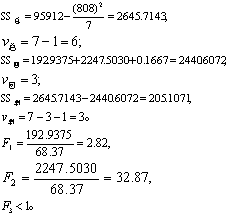 本例由表3,得b0=115.4286,b1=2.625,b2=5.173,λ1=1,λ2=1, ![]()