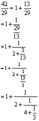 任一个有限正则连分数,只要从最下面开始逐步化简,总能化成一个正有理分数p/q(p,q ∈N).故知有限正则连分数表示一个正有理分数.反之,任何一个正有理分数总可通过辗转相除的方法化为一个有限连分数,例如 对于无限正则连分数,不难用数学归纳法证出它的各个渐近分数pn/qn满足关系式:n≥2时
