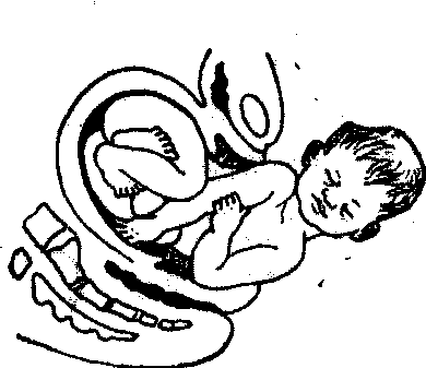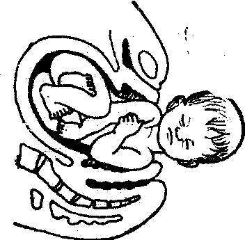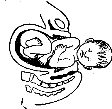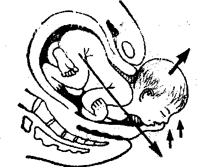 释义 | 正常头位分娩机理 正常头位分娩机理分娩机理是指胎儿在娩出过程中为适应产道各个平面及径线所采取的一系列动作,以其最小径线通过产道以利娩出的过程。头位分娩机理包括:下降、衔接、俯屈、内旋转、仰伸、回复与外旋转、肩娩出及胎体娩出,这些动作是连续进行的,有时一个动作尚未完成,另一个动作已经开始。现以枕左前位为例以阐明分娩的机理。 图1 衔接(左枕前位) 俯屈 在胎头下降过程中,遇到盆壁及盆底的阻力,发生俯屈动作。其机理可以杠杆作用解释: 胎头与脊柱连接处为支点,额部至支点为长臂,枕骨至支点为短臂,当杠杆遇阻力时,短臂下降,长臂上升、胎头于是俯屈 (图2)。俯屈发生后,胎头由入盆时的枕额径(11.3cm)转成枕下前囟径(9.5cm),并继续以此一最小径线下降。 图2 俯屈 内旋转 在胎头下降及俯屈过程中,同时发生内旋转。这是由于中骨盆平面的前后径大于横径,胎头为适应此特点而内旋转45°,成为枕前位(图3)。通常在第一产程末内旋转已完成,胎头的小囟门转至耻骨弓下面。 图3 内旋转 仰伸 胎头在下降,内旋转动作完成后已抵阴道外口。此时胎头枕骨位于耻骨弓下缘。在腹肌与子宫收缩压力及盆底组织阻力所形成的合力作用下,促使胎头以枕骨为支点逐渐向前上方仰伸,于是胎头顶、额、颏部相继娩出(图4)。与此同时,胎儿双肩正进入骨盆入口。 图4 胎头仰伸 回复及外旋转 胎头娩出后,为恢复与躯干本来的正常关系,向左回转45°,称之为回复(图5)。胎儿双肩在盆骨内继续下降时,为了适应中骨盆及骨盆出口前后径较大的特点、双肩径内旋转45°而与骨盆出口前后径取得一致以利娩出。在双肩内旋转的过程中,胎头随之而在阴道口外继续向左旋转45°,此一动作称为外旋转(图6)。 图5 回复 图6 外旋转 肩娩出 肩部旋转完成后,其前肩在耻骨弓下首先娩出,接着后肩从会阴前缘娩出,然后胎身、胎体相继娩出(图7)。 图7 胎肩娩出 ☚ 产程图 接产 ☛ |